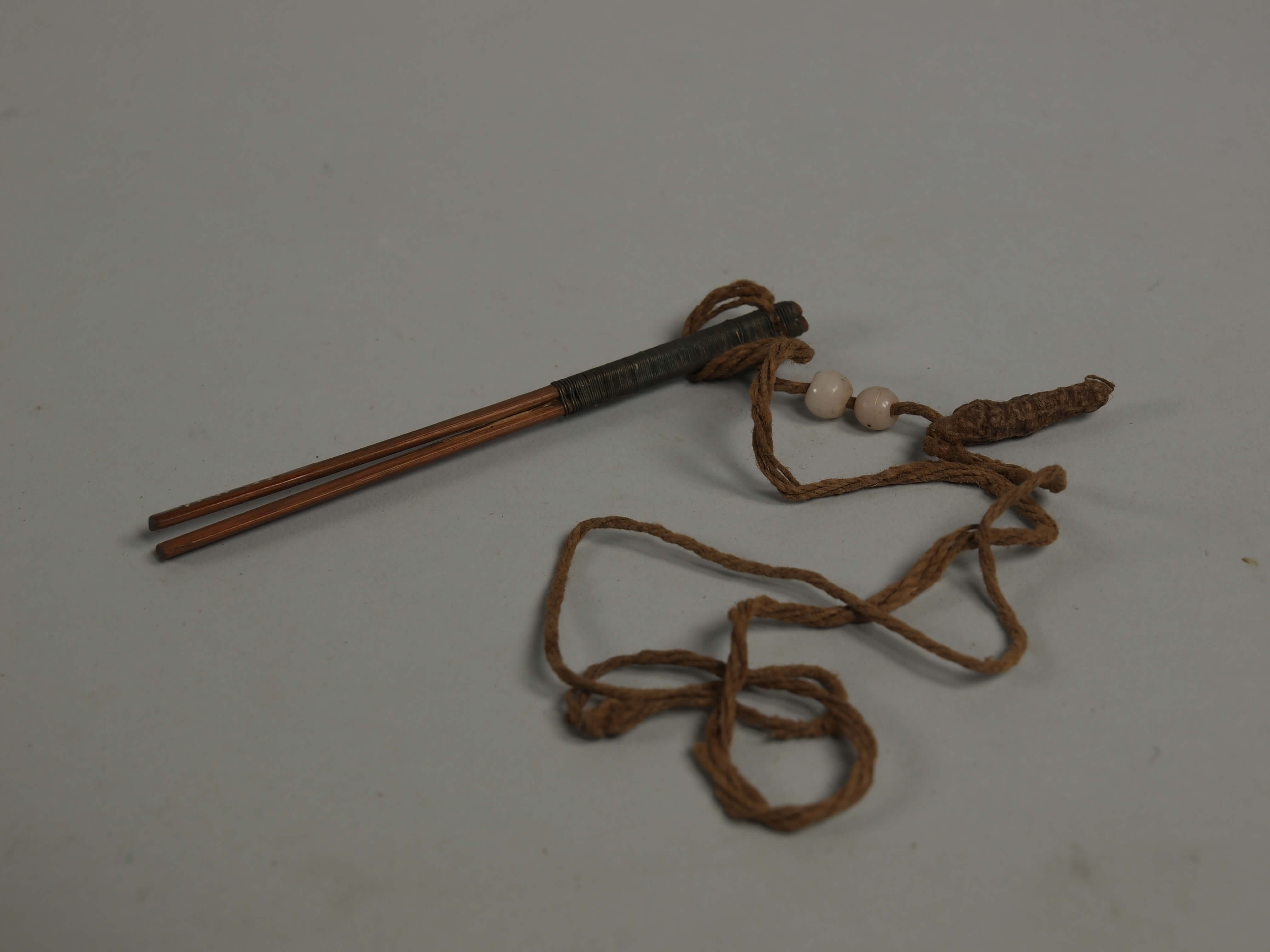 | 扩展说明 | zwei lange Stäbe mit Kupferdrahtumwicklung; Schnur mit zwei weißen Perlen |