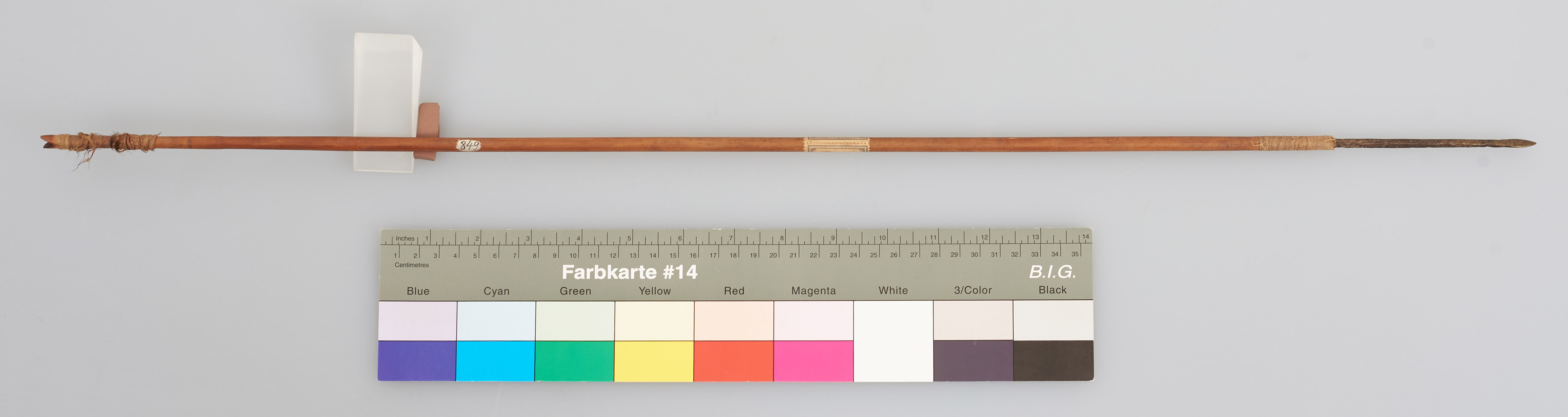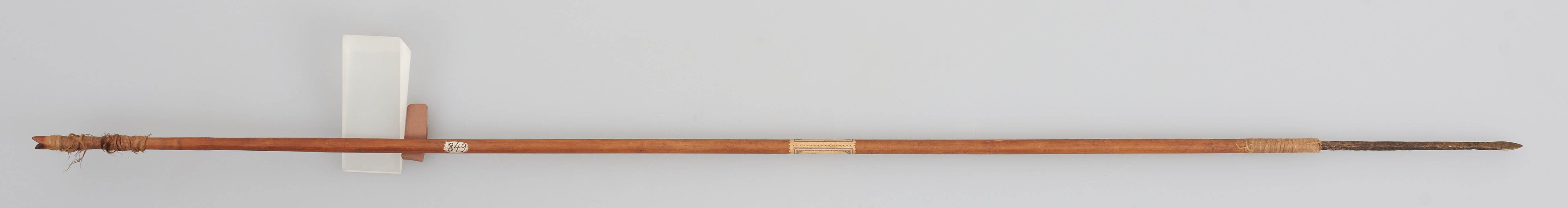 | 扩展说明 | Pfeil mit Holzschaft und Metallspitze. Schäftung und Ende umwickelt, Ende gekerbt. |