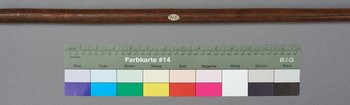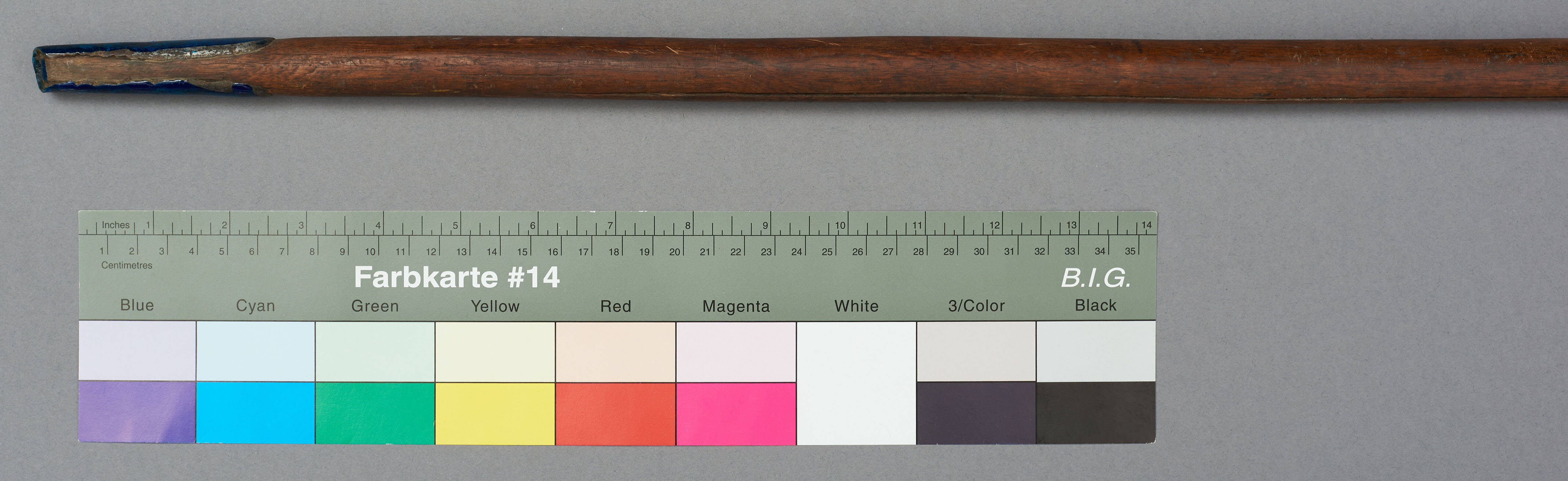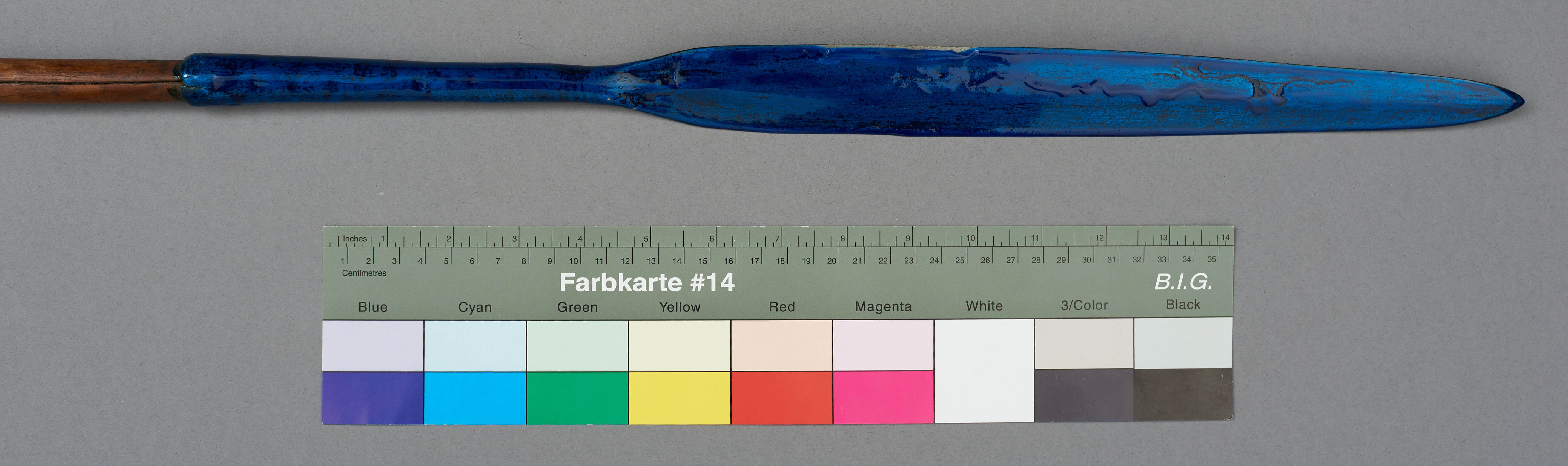 | 扩展说明 | Speer mit kurzer blattförmiger Eisenklinge, einem Holzstab und einem kurzen eisernen Gegengewicht. Teilweise mit blauem Schutzlack überzogen. Im Originalverzeichnis als "Wurfspeer der Massai" beschrieben. |