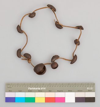 | 扩展说明 | 1 große und 11 kleine Eisenschellen auf Lederriemen. Erhalten von Museum für Völkerkunde Berlin, aus der "Sammlung des Stabsarztes Dr. Widenmann, Ostafrika". |