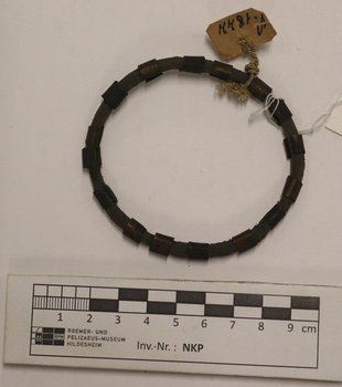 | 扩展说明 | Die Ziffer/Sammlernummer "81" bezieht sich in der im Stadtarchiv Hildesheim erhaltenen Liste der vom Städtischen Museum erworbenen Flegel-Objekte (Best. 741 Nr. 462) nicht auf einen Armreif, sondern ein "Halsband, Kupfer- und Messingdraht-Perlen" mit Herkunftsangabe "Bazza". Dieses ist RPM_V 1823, wo ebenfalls die Ziffer "81" vermerkt ist. |