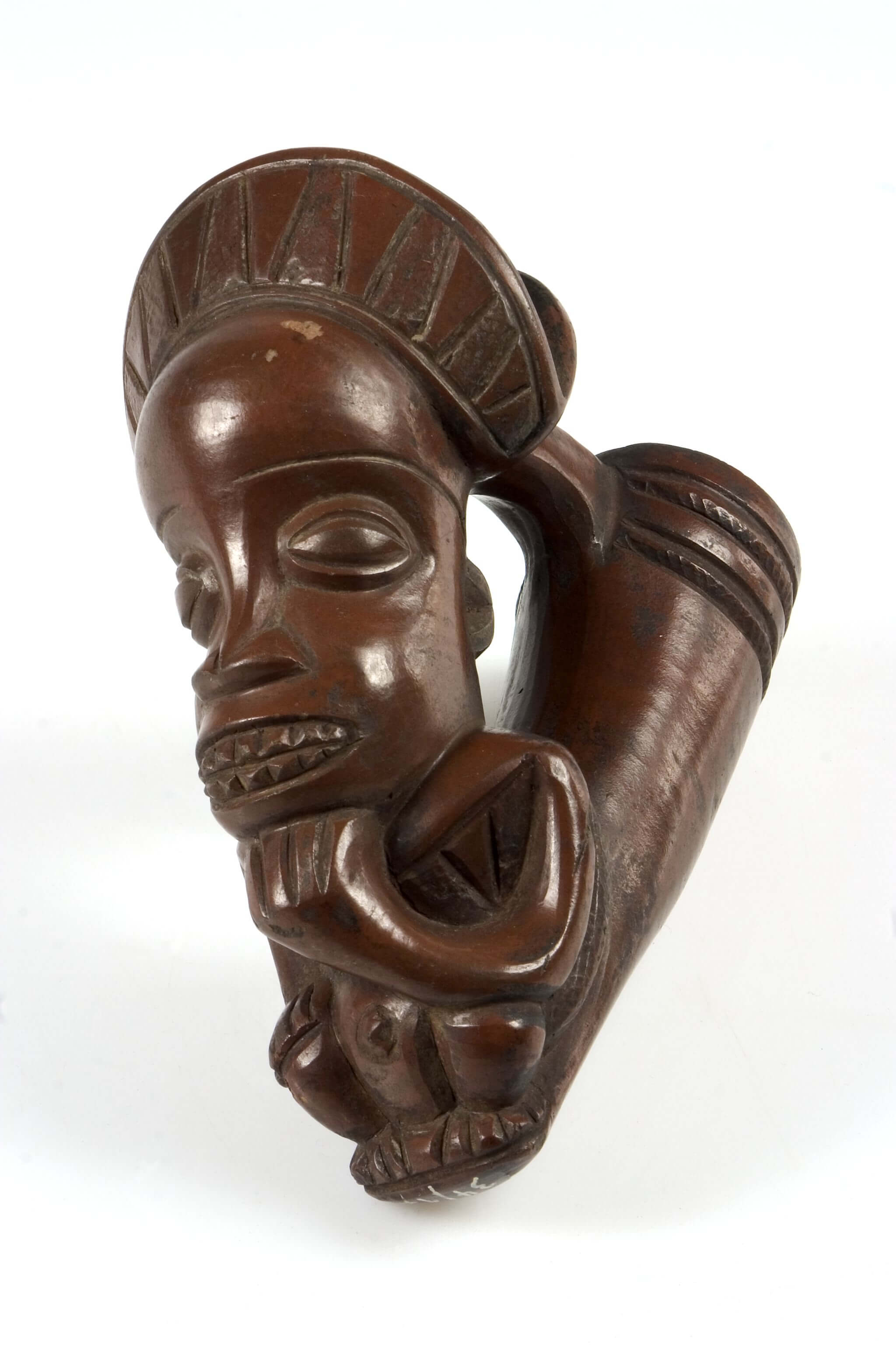 | 扩展说明 | Pfeifenkopf aus rötlichem Ton mit menschlicher Gestalt. Die Schreibweise der kulturellen Zuschreibung variiert in den Quellen; auf den alten Karteikarten im Museum wird überwiegend die Bezeichnung "Bangua" verwendet. |