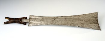 | 扩展说明 | Schwert mit Klinge aus Eisen, keine Spitze, sondern vorne sehr breite, leicht geschwungene Schneide, nach hinten dünner werdend, dann zum Griff hin wieder breiter. Holzgriff in X-Form |