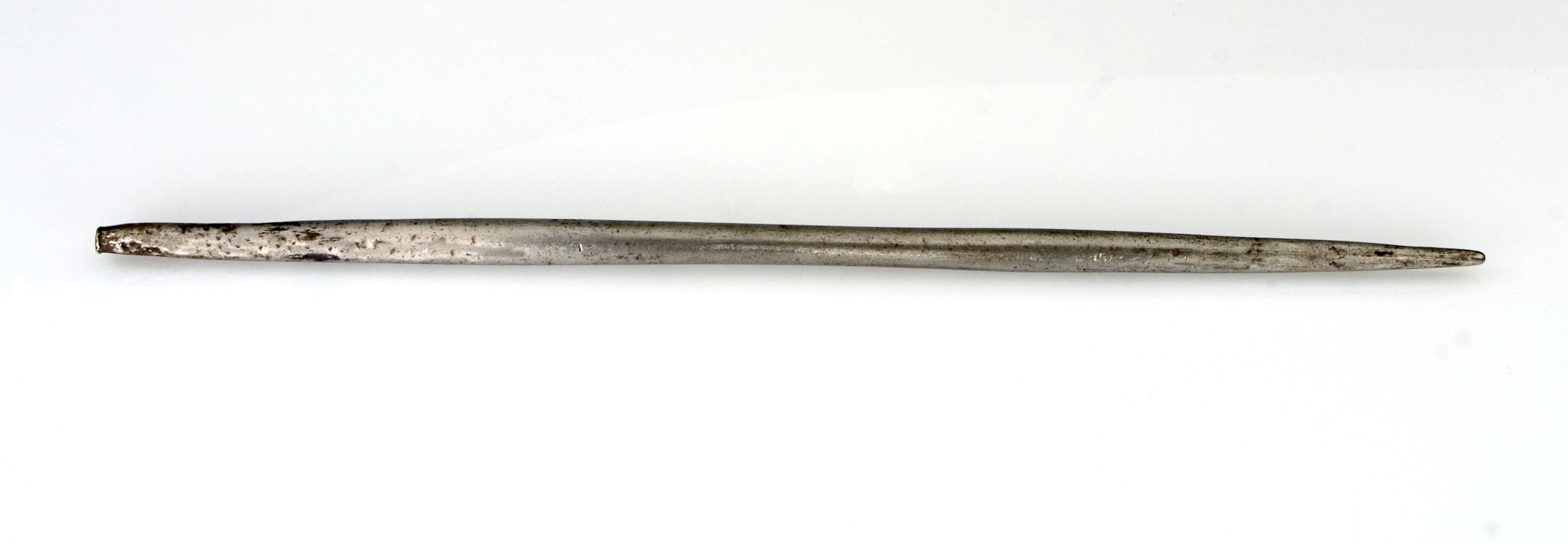 | 扩展说明 | Die Bezeichnung "Namtschi-Heiden" oder "Namschi" wurde in der Kolonialzeit, so auch in der Museumsdokumentation am SMBS, als ethnische Kategorie verwendet und schloß die Dowayo sowie Duupa mt ein. Der Begriff "Namtschi" ist abwertend und geht auf eine Fremdbezeichnung der Fulbe für nichtislamisierte Gruppen zurück, deren Angehörige von Fulbe-Herrschern versklavt wurden. Von Forschungspartnern aus Hoy wurde das Zaunflechten als Funktion angegeben (IB 2021).Der Eisenstab hat ein spitzes und ein abgeflachtes Ende. |