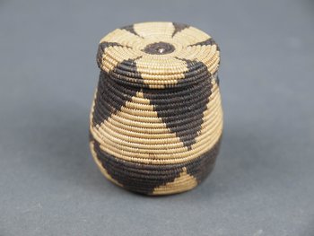 | Erweiterte Beschreibung | geflochten, mit Deckel; gelb-schwarze Muster |
