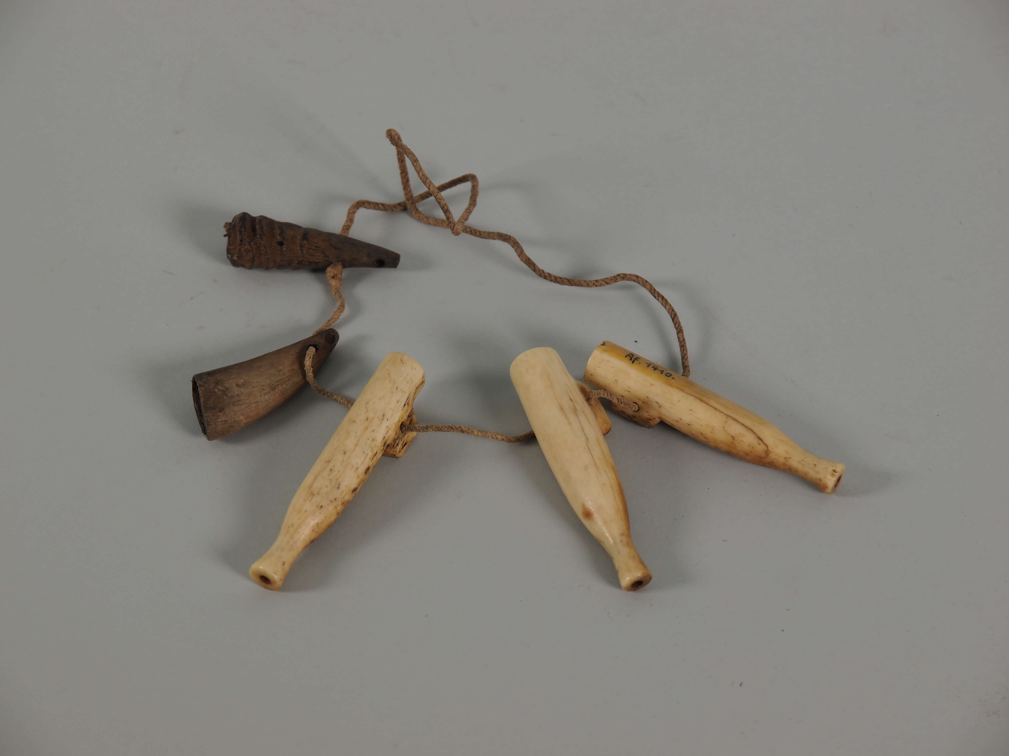 | Erweiterte Beschreibung | Giraffenknochen, 2 Hörnchen, mit Medizin gegen Geister und Krankheit, 3 kleine Pfeifen; |