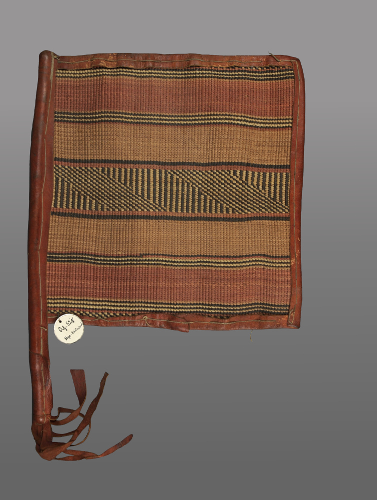| Erweiterte Beschreibung | in Form einer Fahne aus pflanzlichem Material geflochten und mit Leder eingefasst, Stiel mit Leder überzogen |