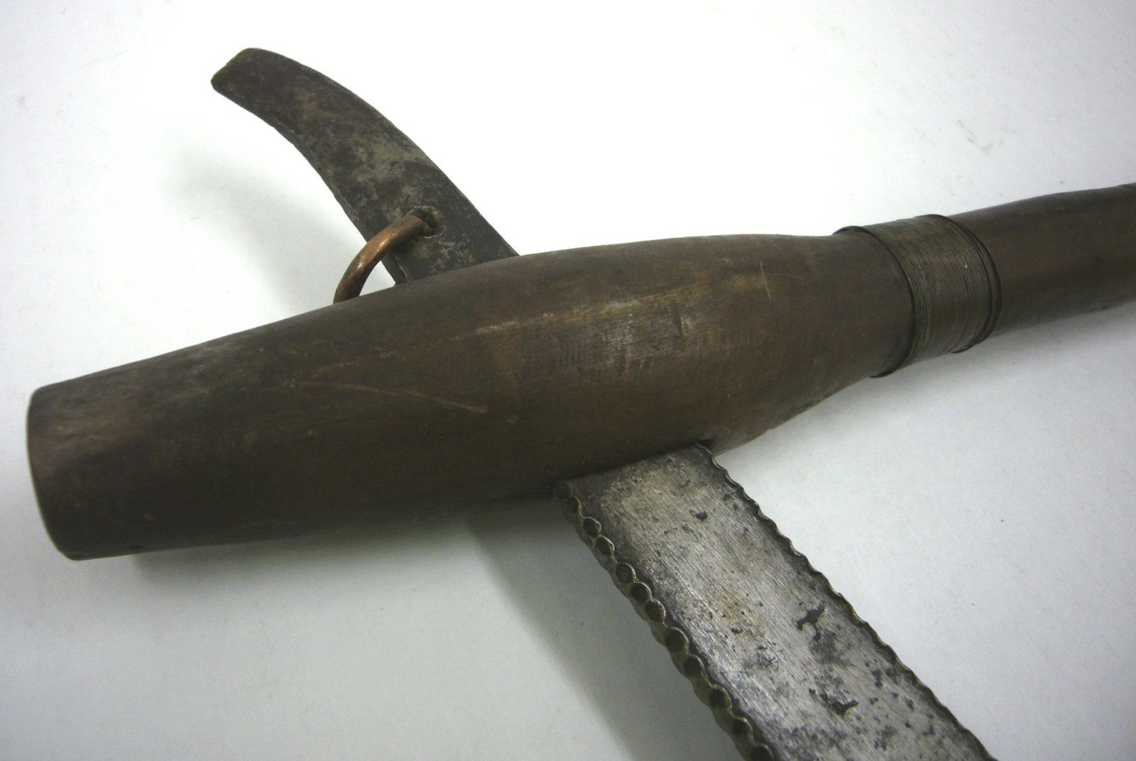 | Maße | Länge (Schaft): 51,6 cm; Durchmesser: 2,1-3,6 cm; Länge (Klinge): 30,5 cm; Breite (Klinge): 6,5 cm; Dicke (Klinge): 0,3-0,5 cm |