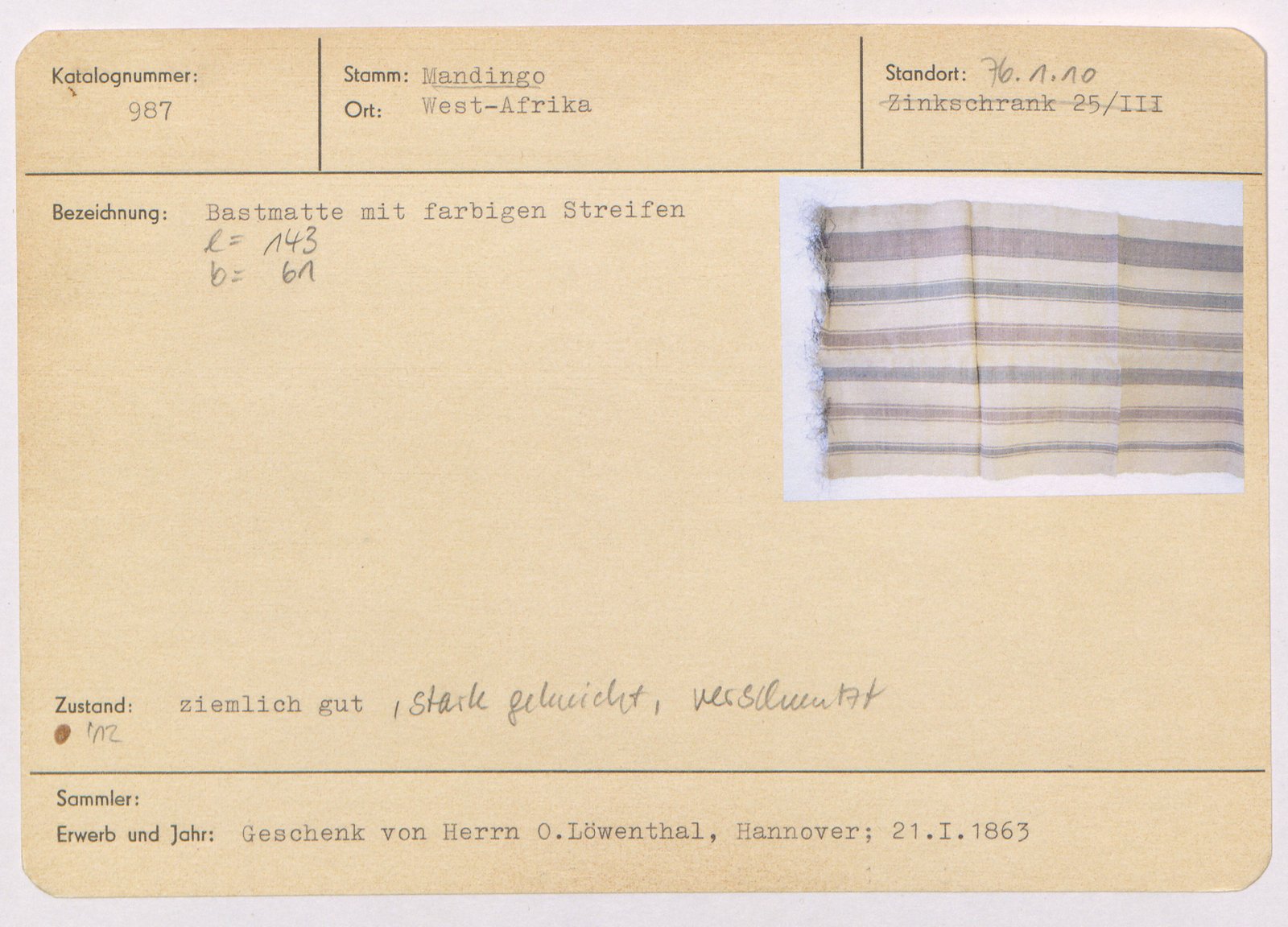 Provenienz - Frühestens ab 1863 erworben von/vom Landesmuseum Hannover durch unbekannte Erwerbsart bei/beim Naturhistorische Gesellschaft zu Hannover (NGH).