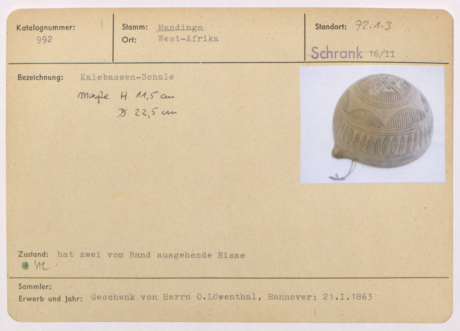 • Frühestens ab 1863 erworben von/vom Landesmuseum Hannover durch unbekannte Erwerbsart bei/beim Naturhistorische Gesellschaft zu Hannover (NGH).