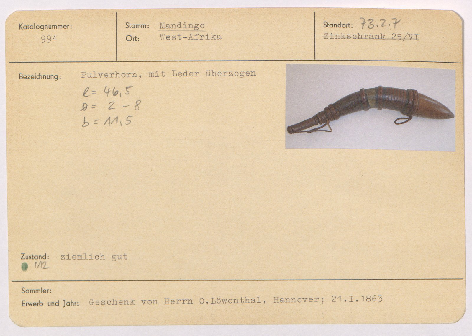 - Am 21. Januar 1863 erworben von/vom Naturhistorische Gesellschaft zu Hannover (NGH) als Schenkung bei/beim Otto Löwenthal.