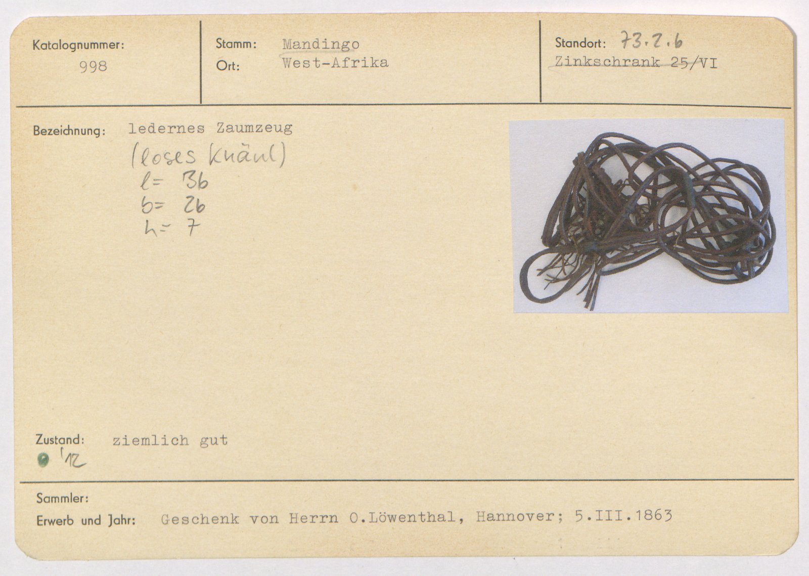 - Am 21. Januar 1863 erworben von/vom Naturhistorische Gesellschaft zu Hannover (NGH) als Schenkung bei/beim Otto Löwenthal.