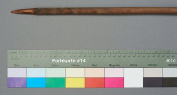 | Erweiterte Beschreibung | Speer mit kurzer blattförmiger Eisenklinge und einem Holzstab. Das Gegengewicht fehlt. |