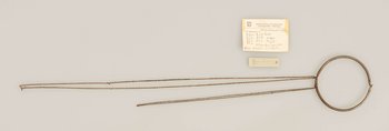 | Maße | Ring: H: 0,9 cm; B: 12,6 cm; L: 13,5 cm; Ring + Kette: L: 80 cm; Länge Kupferkette: 67,3 cm; Länge Eisenkette: 40,7 cm |