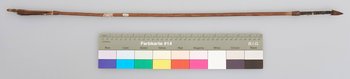 | Erweiterte Beschreibung | Pfeil mit Holzschaft, Holzvorschaft, Metallspitze und Flugsicherung. Laut Inventarbuch des Landesmuseum Natur und Mensch Oldenburg aus "Ussukuma". |