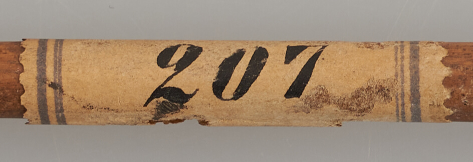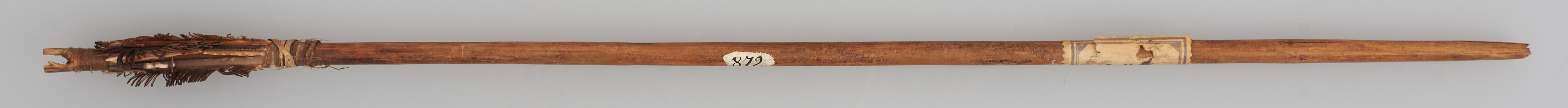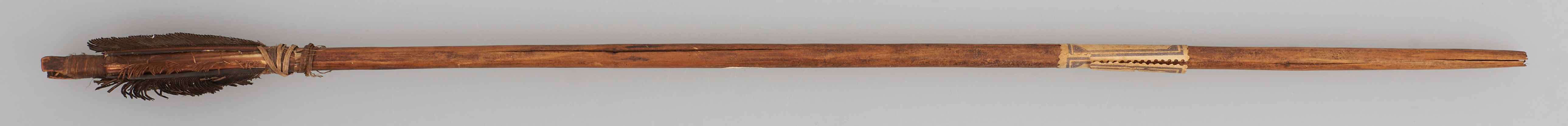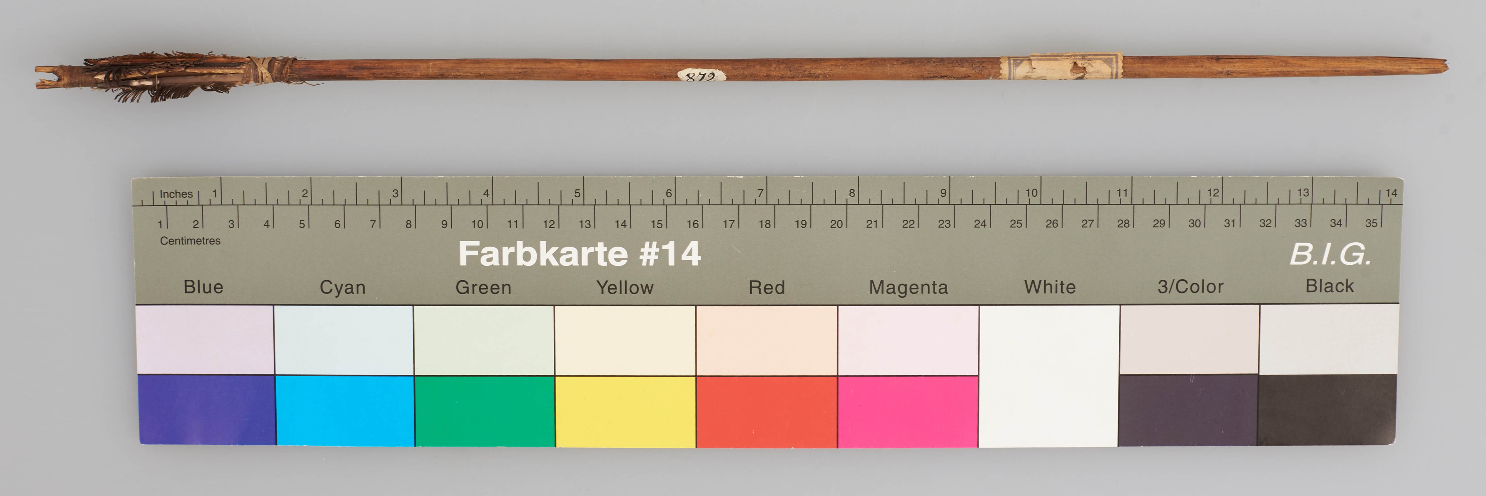 | Erweiterte Beschreibung | Kleiner Pfeil mit Holzschaft und Flugsicherung, Ende umwickelt und gekerbt. Spitze verloren. |