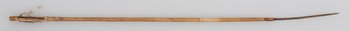 | Erweiterte Beschreibung | Pfeil mit Holzschaft, vierkantiger Metallspitze und beschädigter Flugsicherung. Ende gekerbt. |