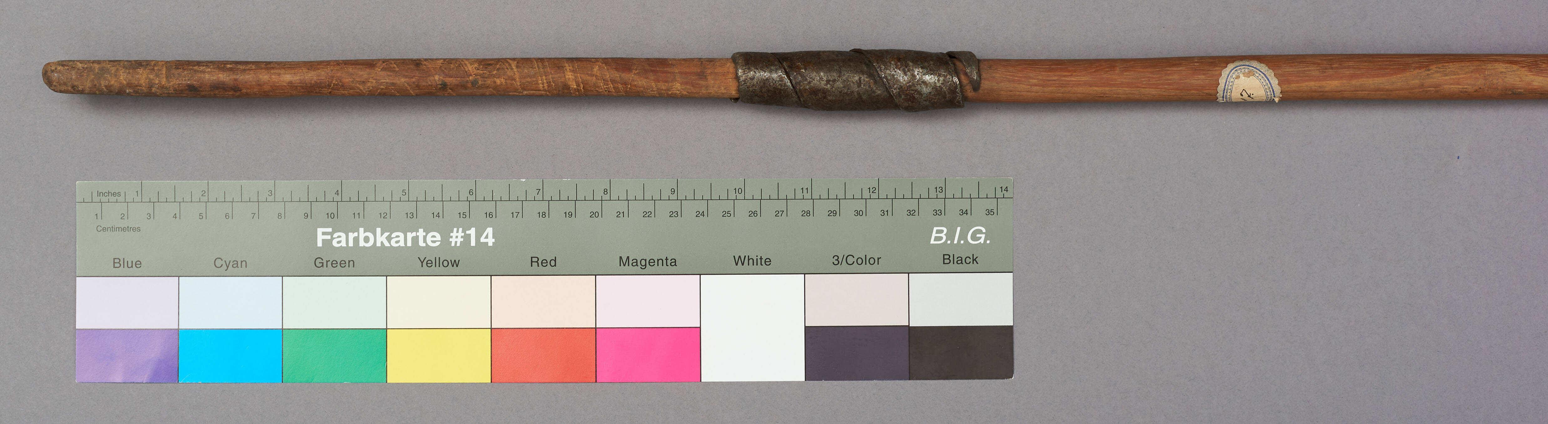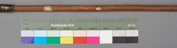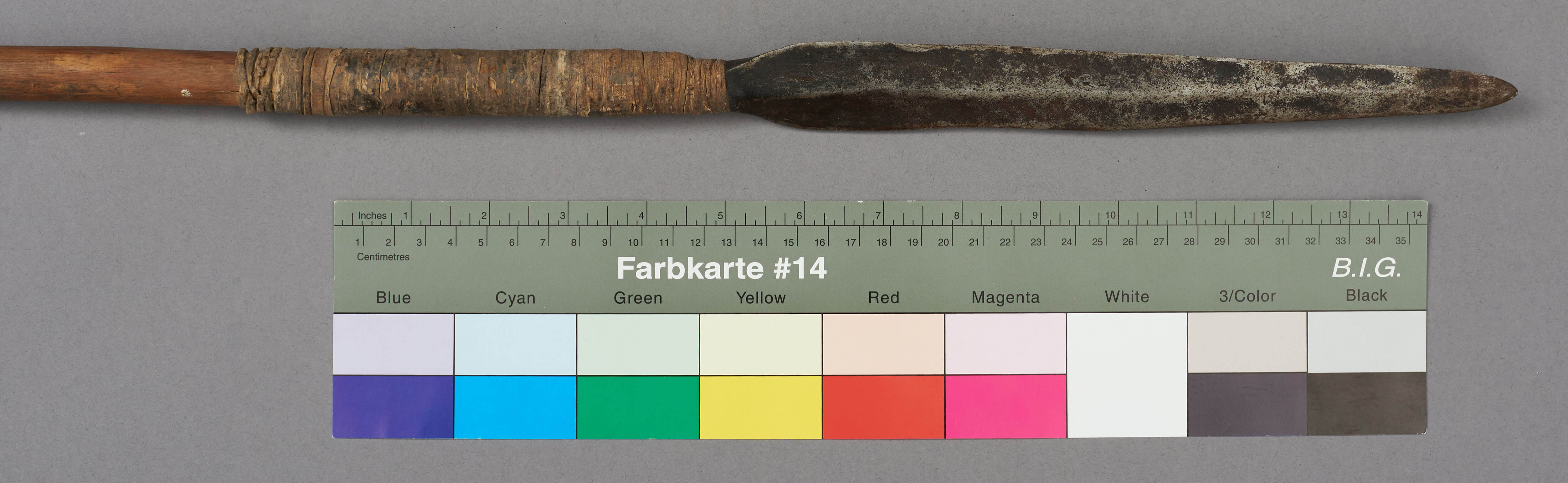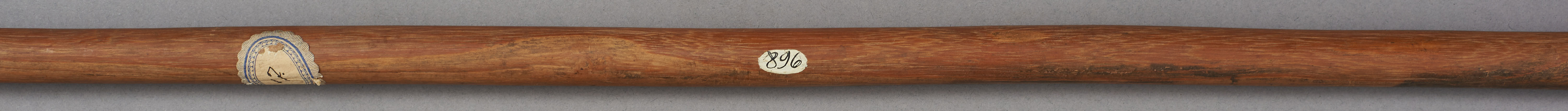 | Erweiterte Beschreibung | Speer mit kurzer blattförmiger Eisenklinge, einem Holzstab und einem kurzen eisernen Gegengewicht. Teilweise mit Leder umwickelt. Im Originalverzeichnis als "Speer aus Mburragebirge" beschrieben. |