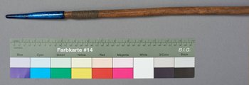 | Erweiterte Beschreibung | Speer mit fehlender Klinge. Teilweise mit blauem Schutzlack überzogen. |