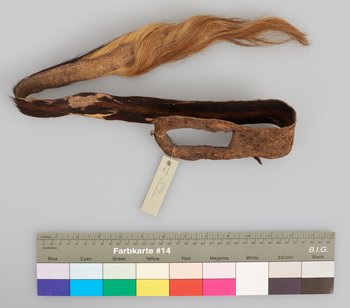 | Erweiterte Beschreibung | Fellstreifen mit Haarbüschel. Im Verzeichnis beschrieben als "Schwanz aus Leder geschnitten". |