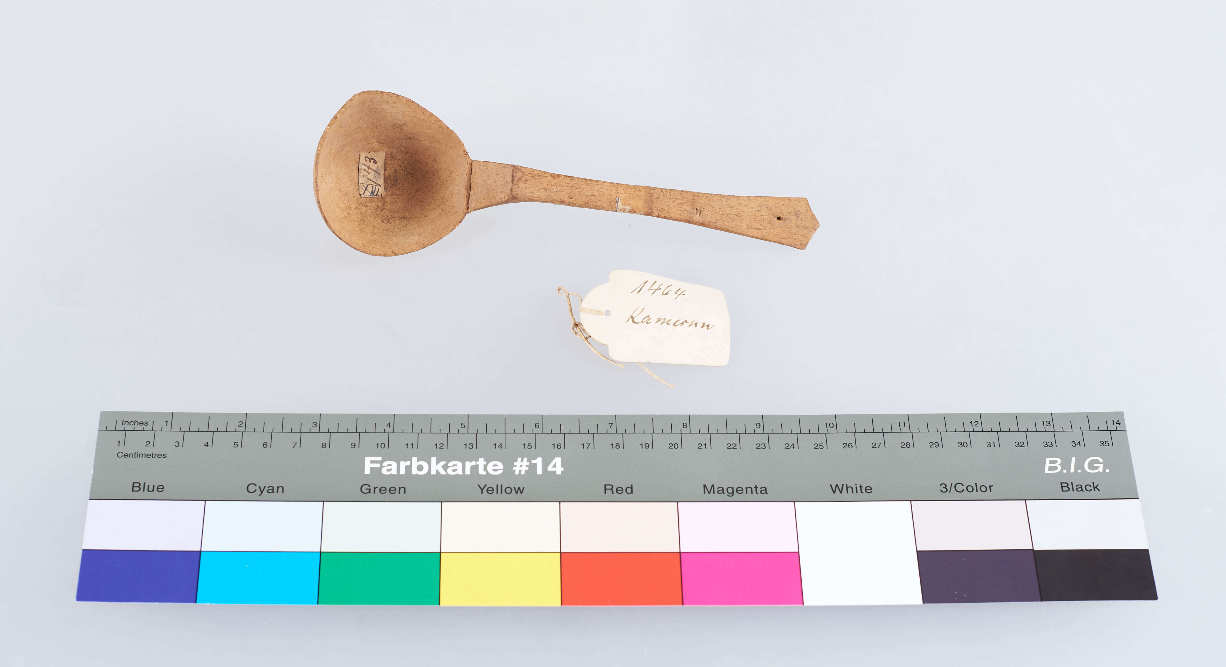| Erweiterte Beschreibung | Löffel aus Holz. Erhalten vom Museum für Völkerkunde Berlin, aus der "Sendung aus dem Schutzgebiete Kamerun, Sammlung von Hauptmann Kund". |