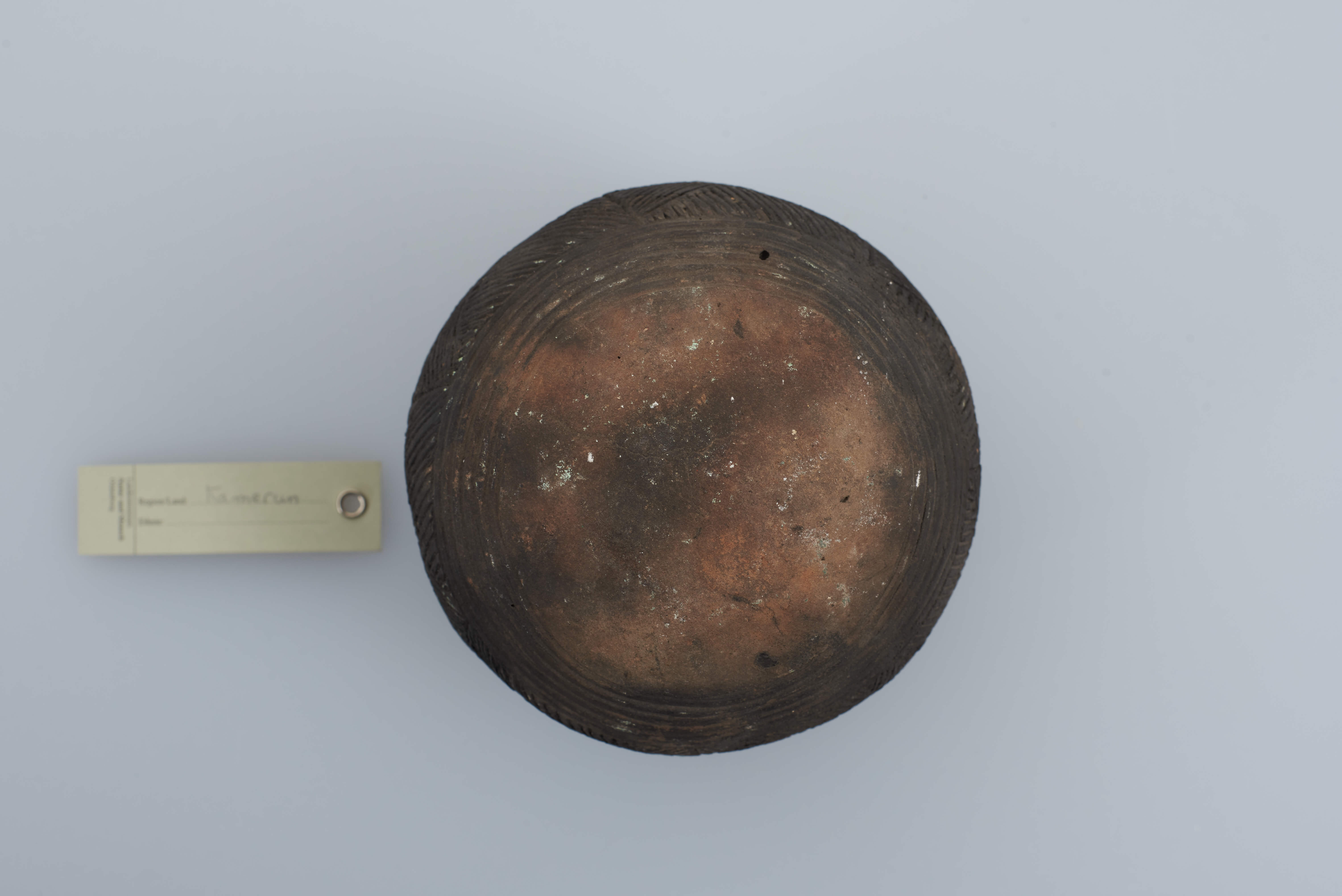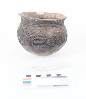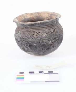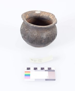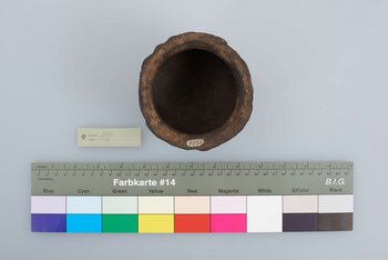 | Erweiterte Beschreibung | Koch- und Eßtopf aus Ton, sehr verbraucht, ritzverziert. Auf der Karteikarte des Landesmuseums Natur und Mensch Oldenburg befindet sich die Angabe "Vom Berliner Völkerkundemuseum 1889 geschenkt", im Zuwachsverzeichnis NLA OL Rep. 751, Akz. 2010/054, Nr. 308, ist das Objekt jedoch im Jahr 1890 eingetragen. Erhalten vom Museum für Völkerkunde Berlin, aus der "Sendung der Forschungsstation Kamerun (Hauptmann Kund)". |