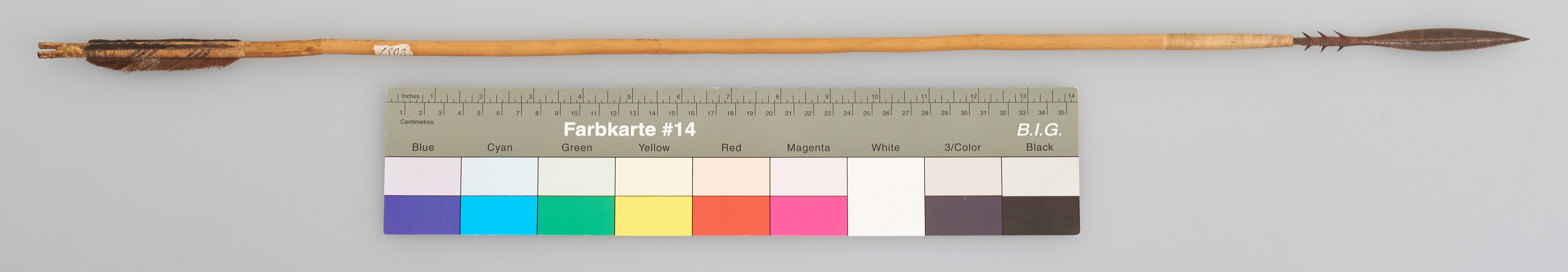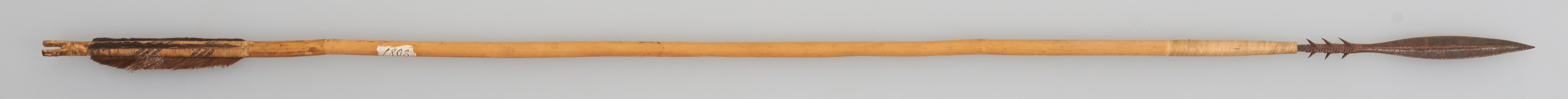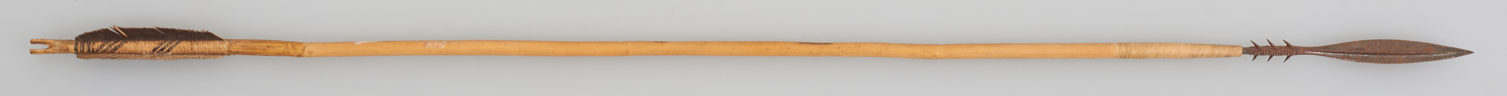 | Erweiterte Beschreibung | Pfeil mit Holzschaft, Metallspitze mit 6 Widerhaken und Flugsicherung. |