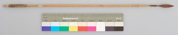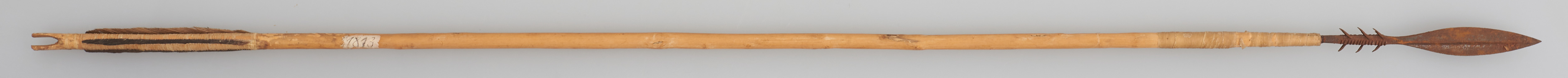 | Erweiterte Beschreibung | Pfeil mit Holzschaft, Metallspitze mit 6 Widerhaken und Flugsicherung. |