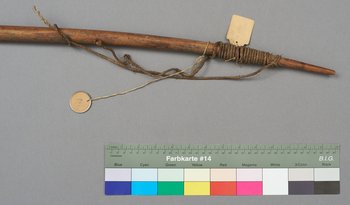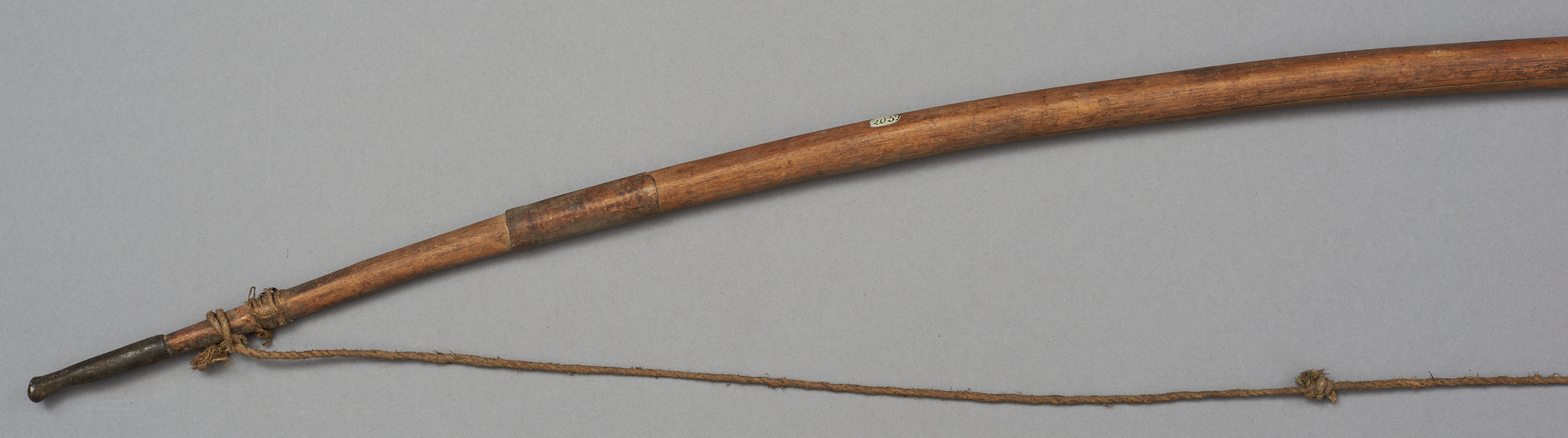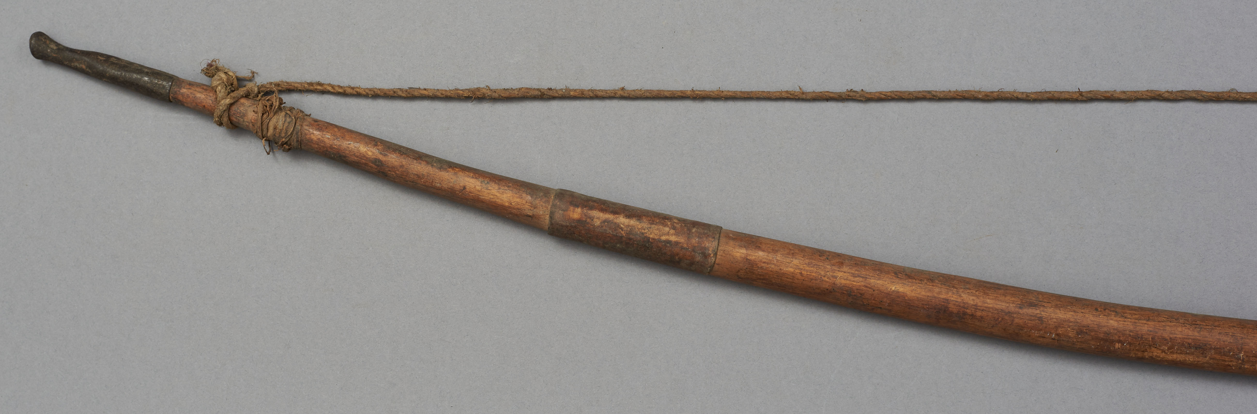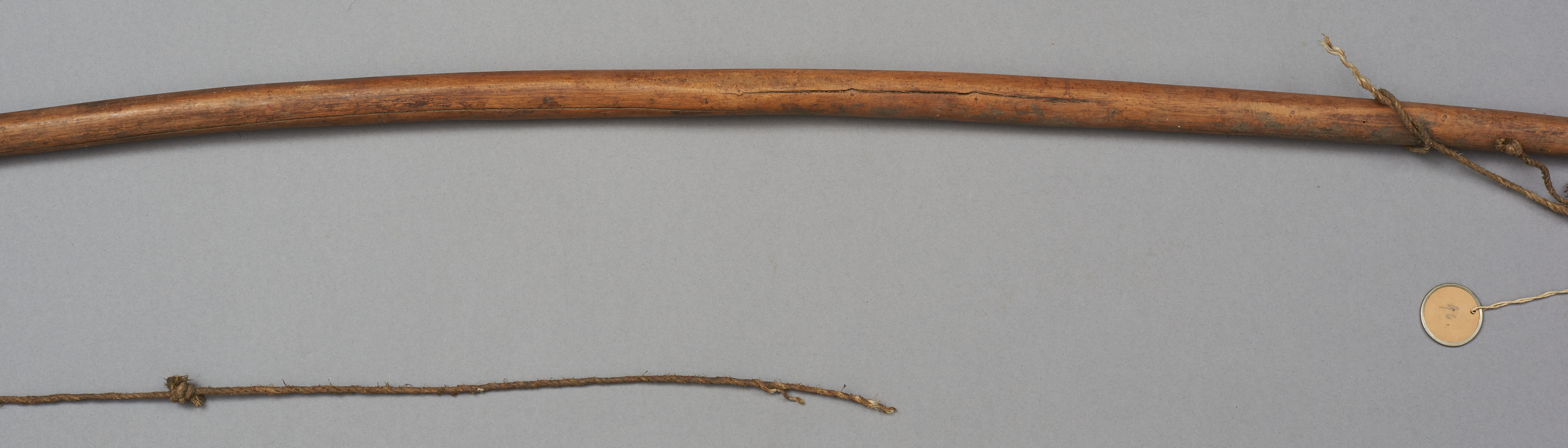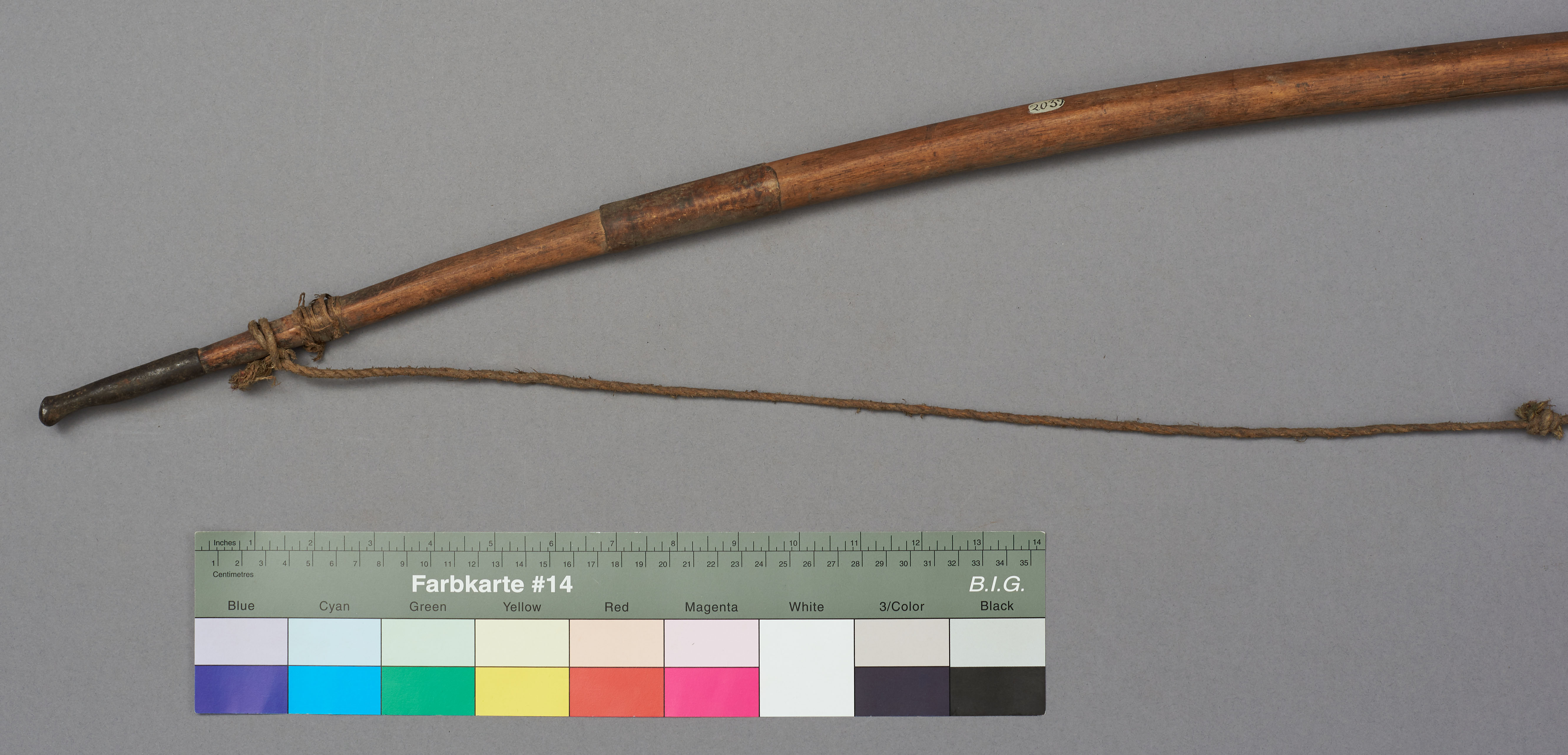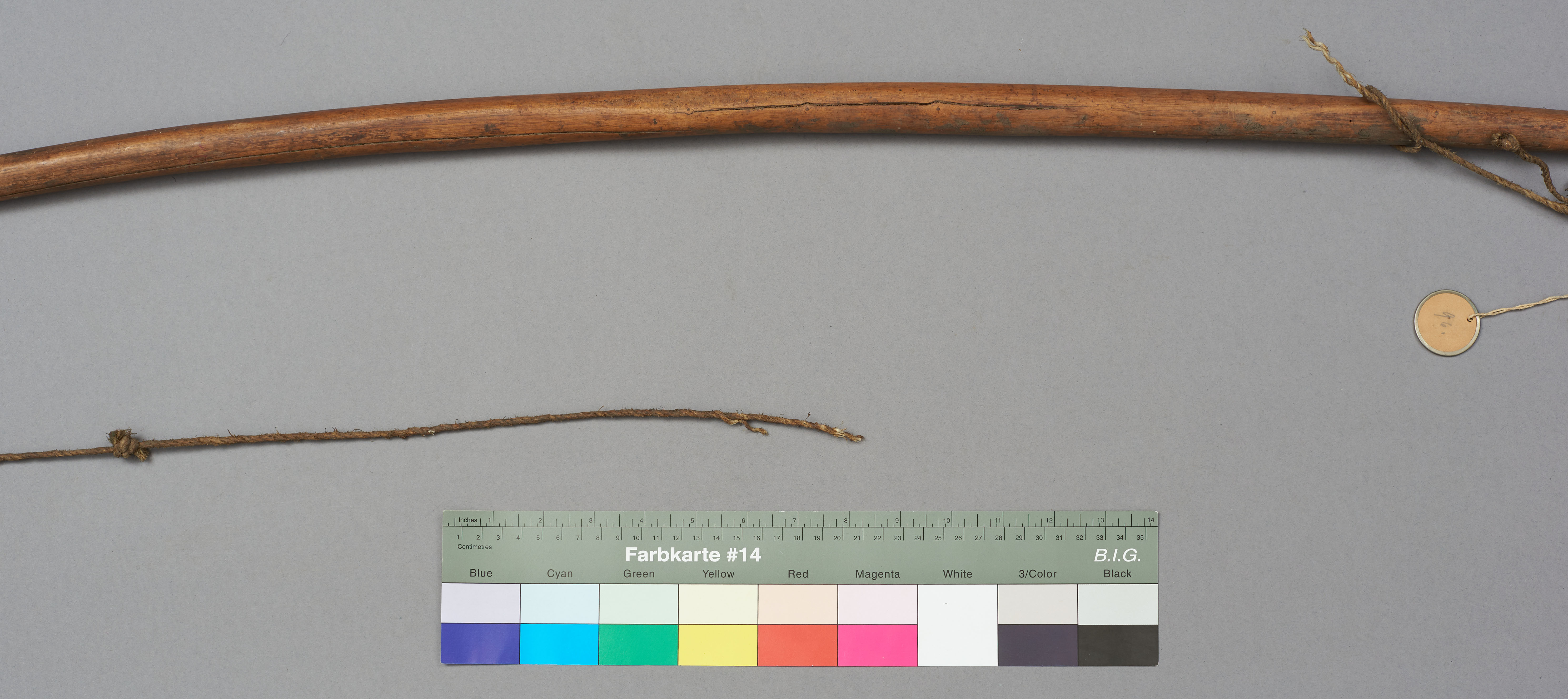 | Erweiterte Beschreibung | Bogen mit gerissener Sehne, Umwicklungen aus Metall und Leder. Laut Inventarbuch des Landesmuseum Natur und Mensch Oldenburg "aus Ussukuma". |