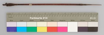 | Erweiterte Beschreibung | Pfeil mit Holzschaft, Metallspitze und gekerbtem Ende. |
