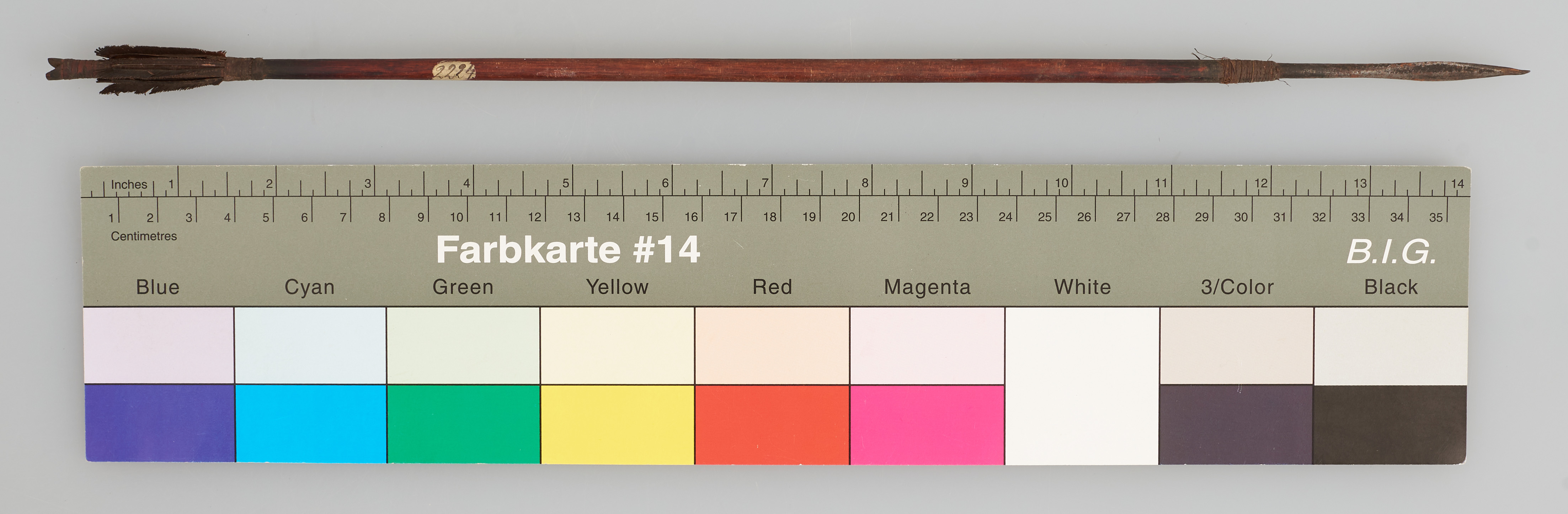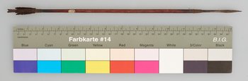 | Erweiterte Beschreibung | Pfeil mit Holzschaft, Metallspitze und Flugsicherung. |