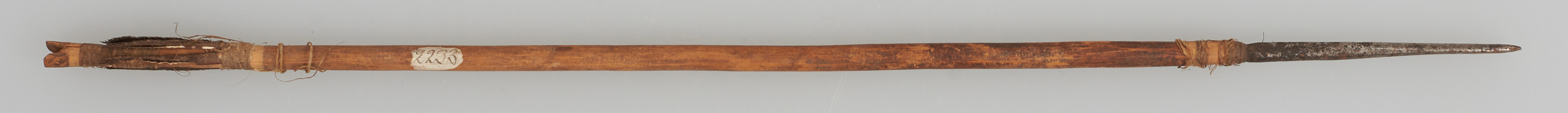 | Erweiterte Beschreibung | Pfeil mit Holzschaft und Metallspitze. Ende gekerbt. |