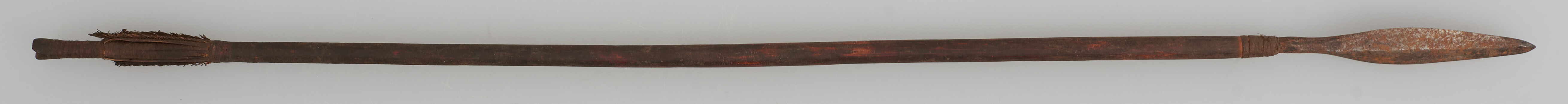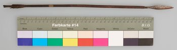 | Erweiterte Beschreibung | Pfeil mit Holzschaft, Metallspitze und Flugsicherung. Ende gekerbt. |