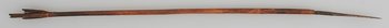 | Erweiterte Beschreibung | Kurzer Pfeil mit beschädigtem Holzschaft, Metallspitze mit gedrehtem Stiel und Flugsicherung. Ende umwickelt und gekerbt. |