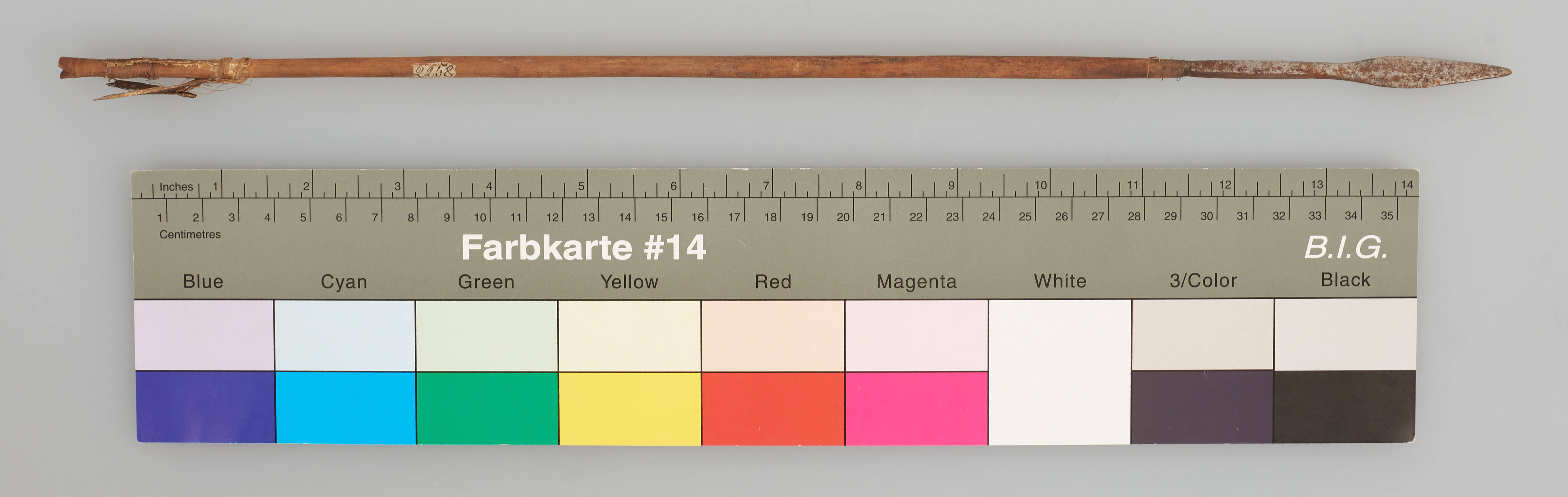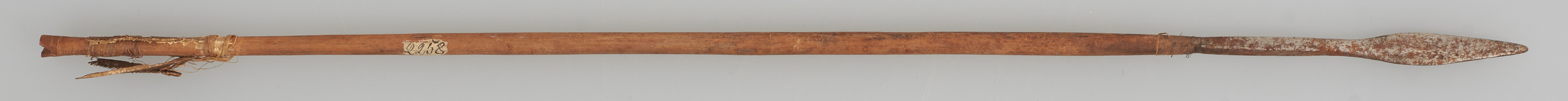 | Erweiterte Beschreibung | Pfeil mit Holzschaft, Metallspitze mit vierkantigem Stiel und Flugsicherung (stark beschädigt). Schäftung und Ende umwickelt. Ende gekerbt. |