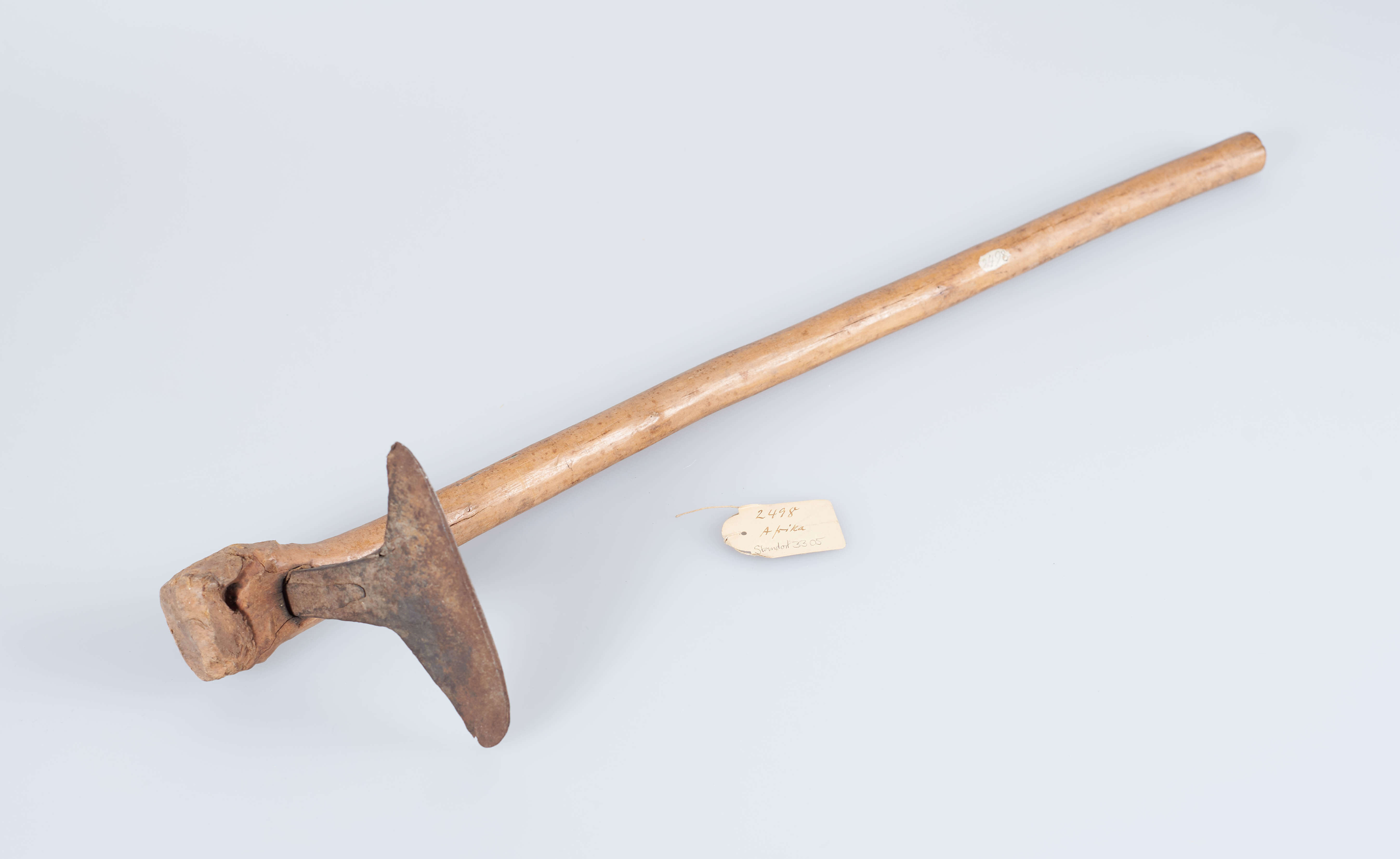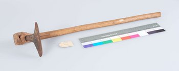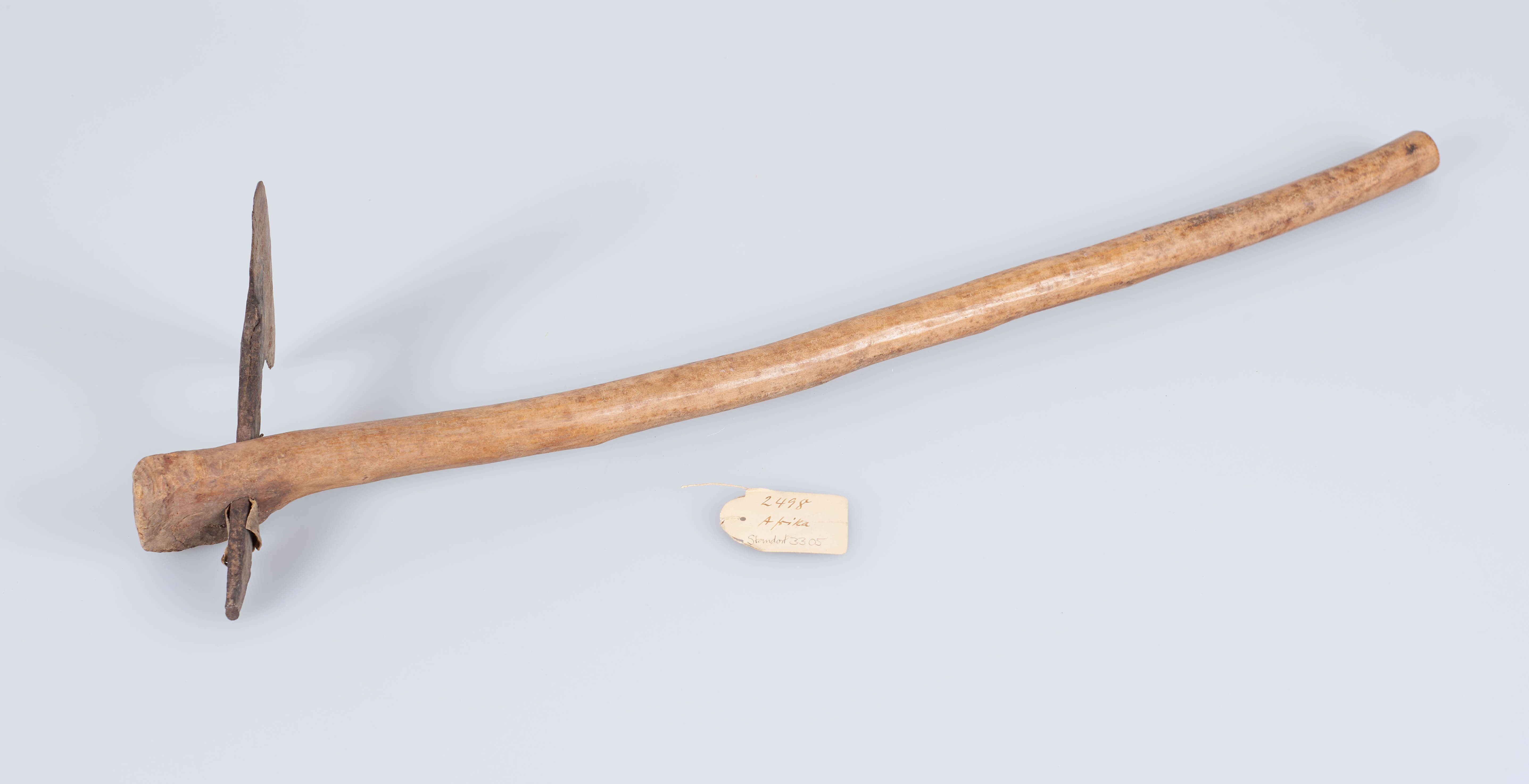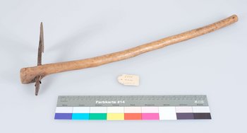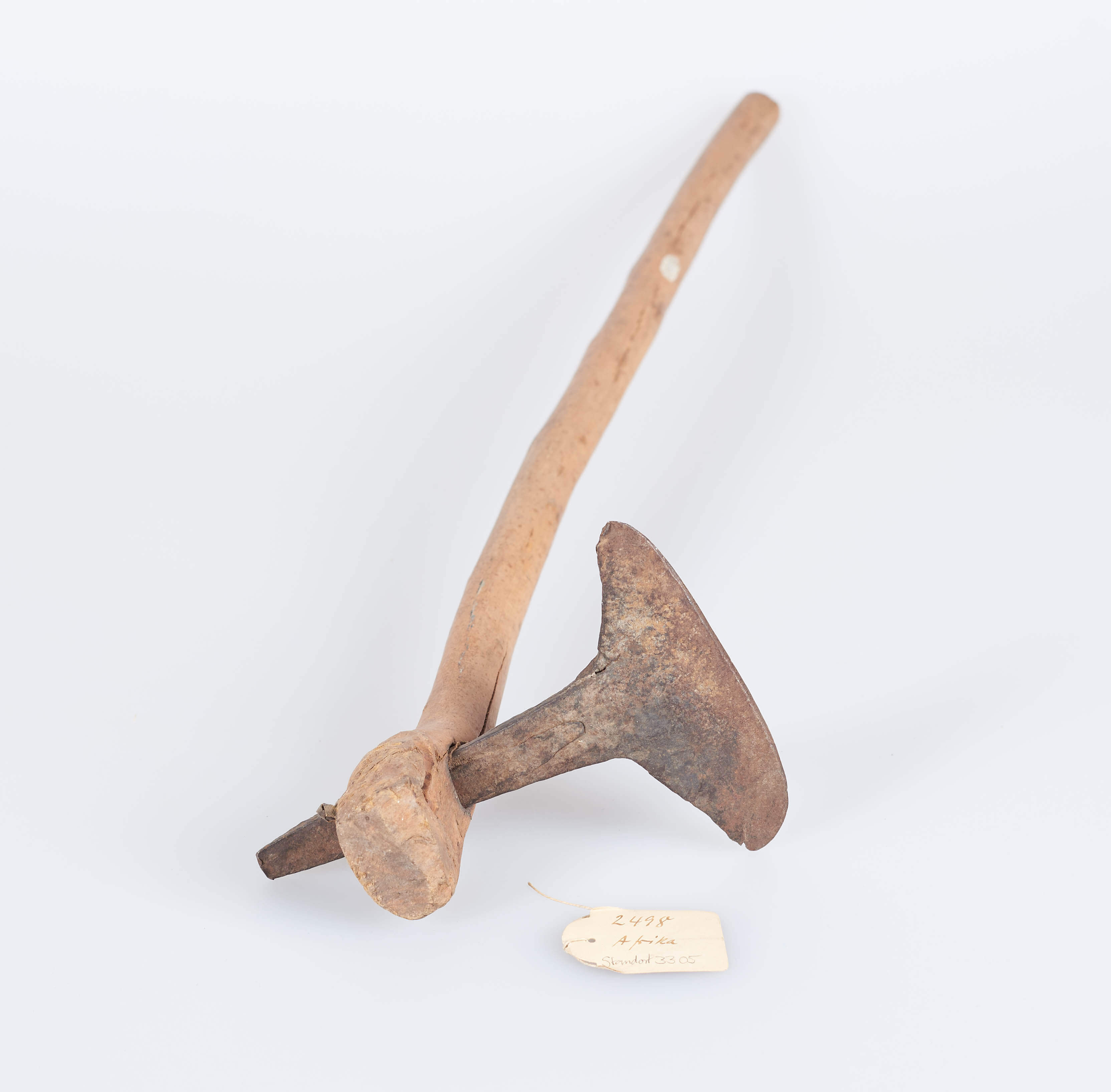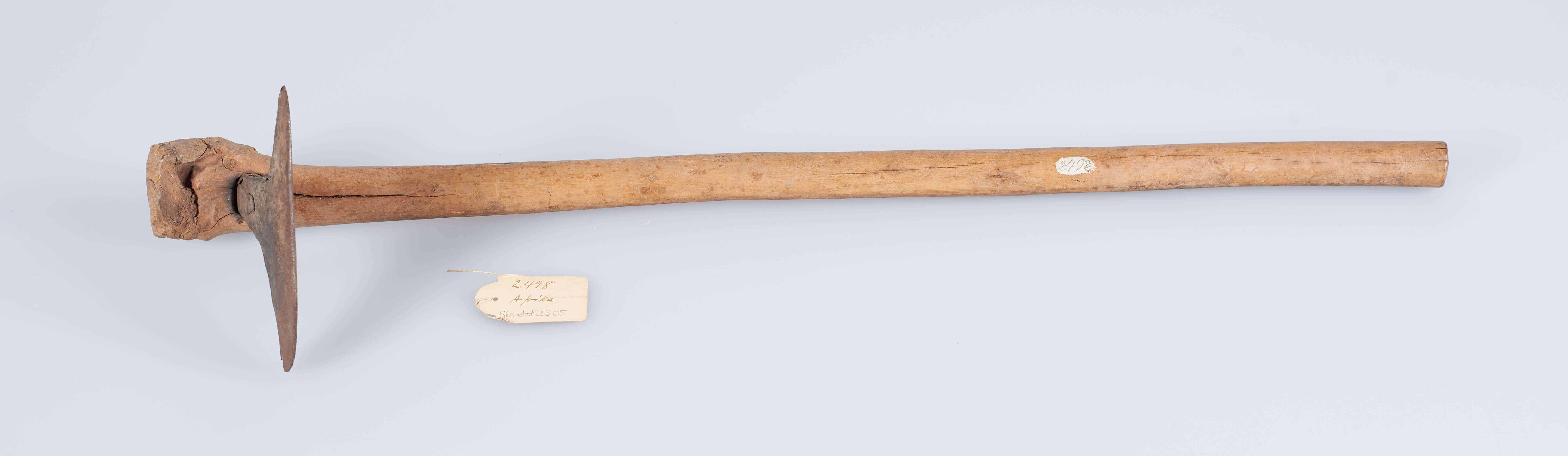 | Erweiterte Beschreibung | Holzstiel, querstehendes Eisenblatt, Feldhacke. Erhalten vom Museum für Völkerkunde Berlin, aus der "Sammlung des Oberleutnants v. Grawert". Im entsprechenden Verzeichnis angegeben als "Feldhacke", Herkunft "Wanyaturu". |