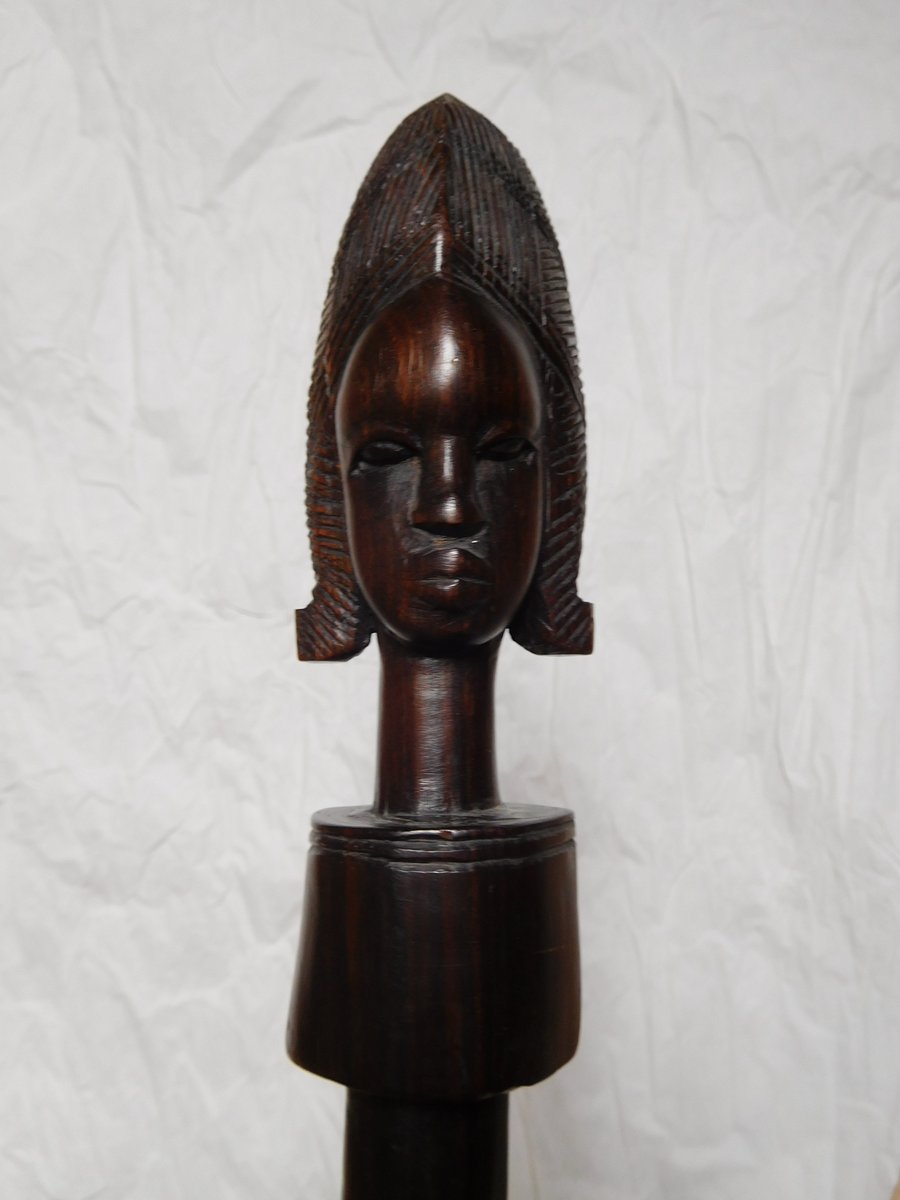 | Erweiterte Beschreibung | Dunkelfarbiger Stab mit Frauenkopf an der Spitze. Vermutlich wurde er für Tourist*innen produziert. |