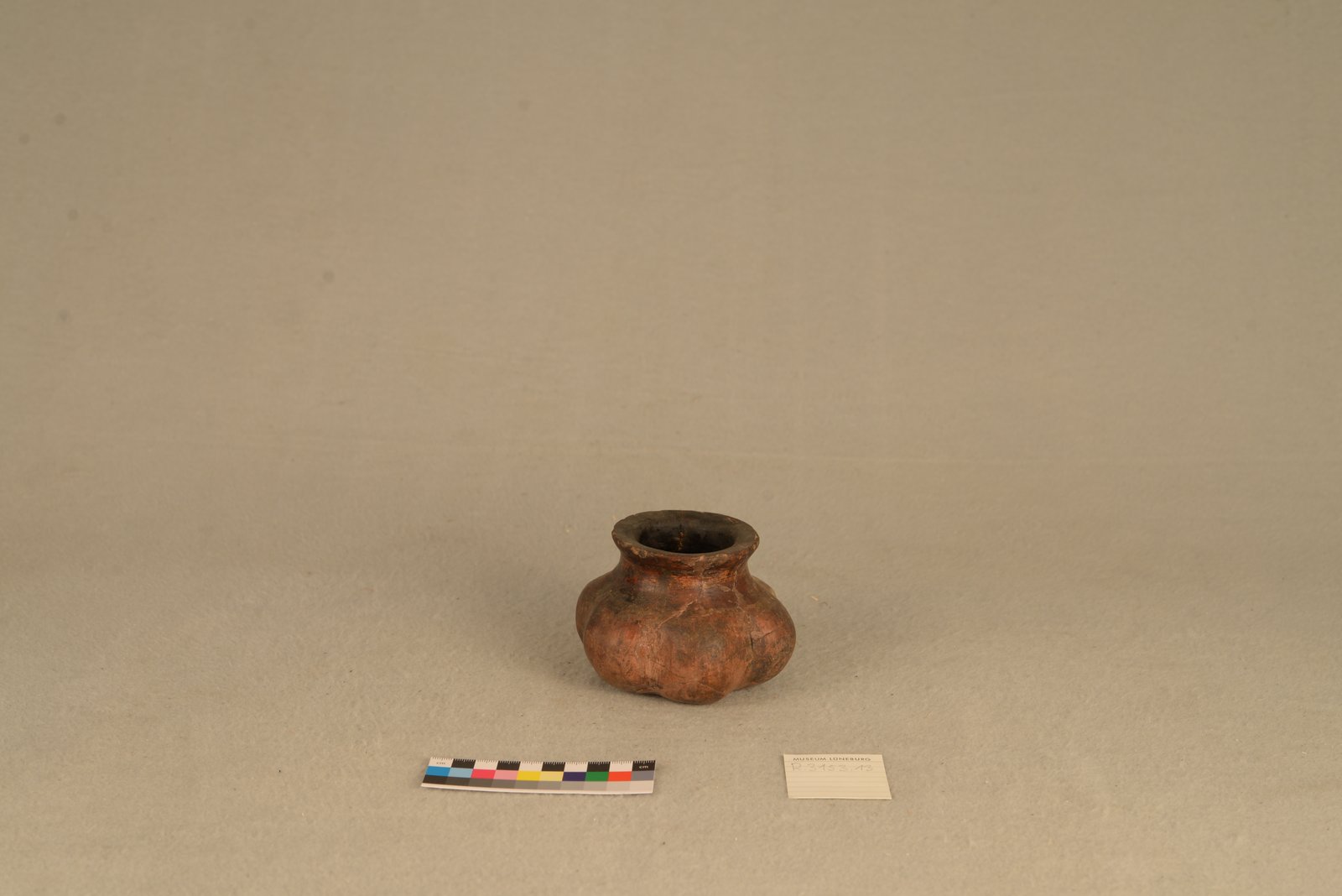 | Erweiterte Beschreibung | Tongefäß mit kürbisartigen Ausbeulungen. |