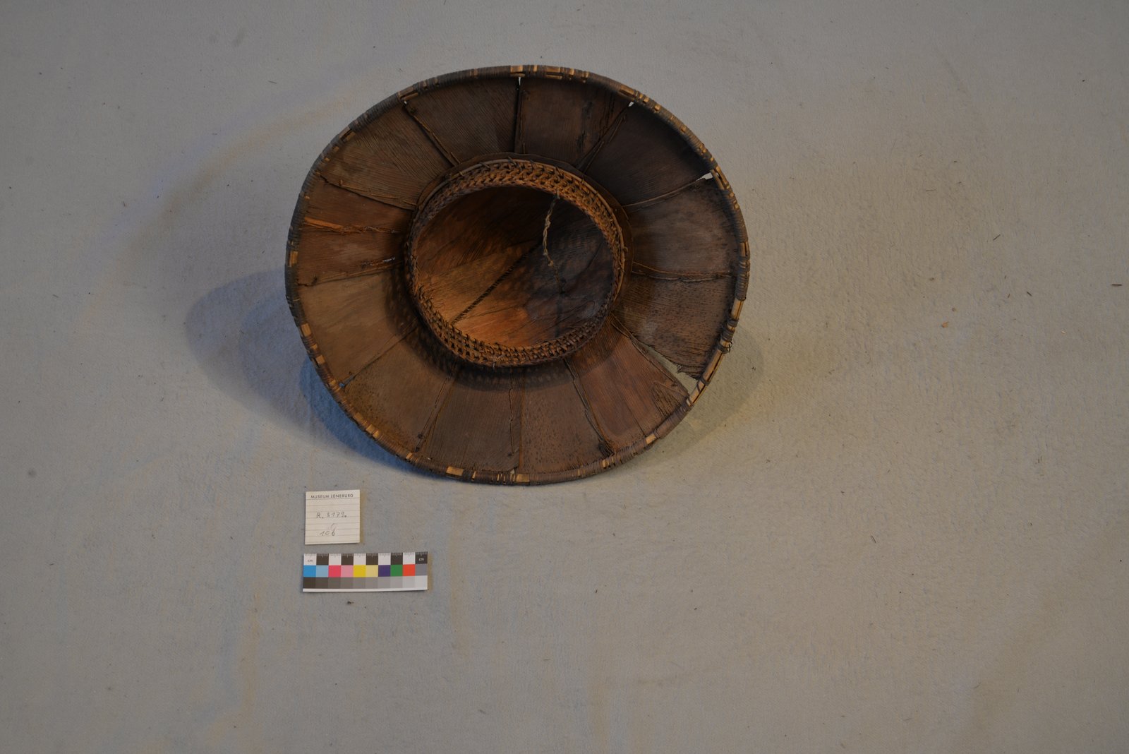 1893 schenkte der Sohn des Lüneburger Arztes Jüdell dem Museum acht Hüte aus dem Norden Vietnams/Tonkin und von der chinesischen Insel Hainan. Heute sind zehn Hüte erhalten, die sich dieser Region zuordnen lassen. Drei davon sind wohl die Objekte R.3179.98 bis R.3179.100. Es ist wahrscheinlich, dass dieser Hut eines der anderen fünf Stücke ist. Ansonsten kam 1917 auch ein damals für siamesisch gehaltener Hut aus dem Nachlass Mutter des Fabrikanten J. G. Leppien ins Museum.