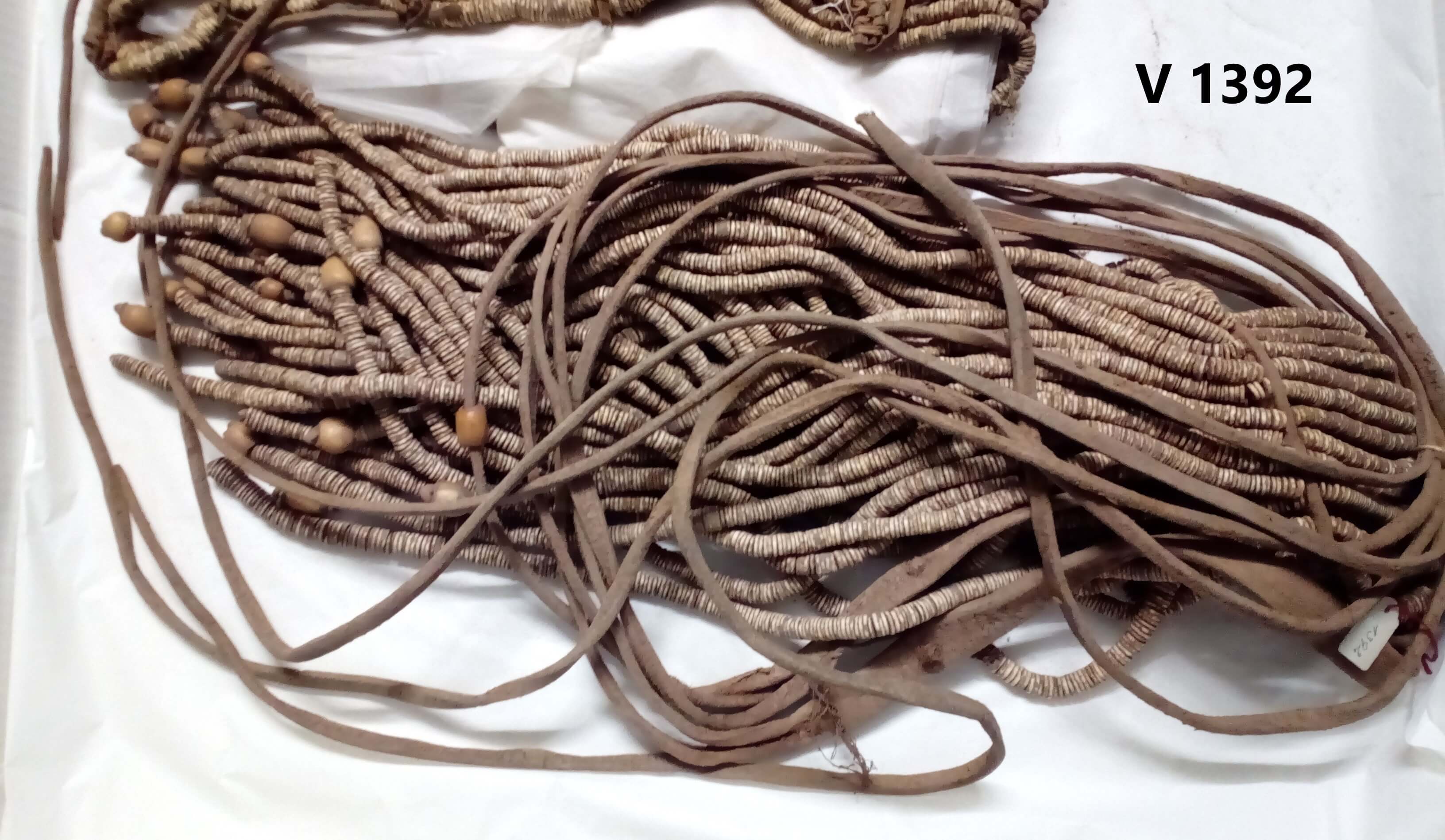 | Inventarbuch-Eintrag | Schurz aus Lederriemen und Straußeneischeibchen für Weiber. |