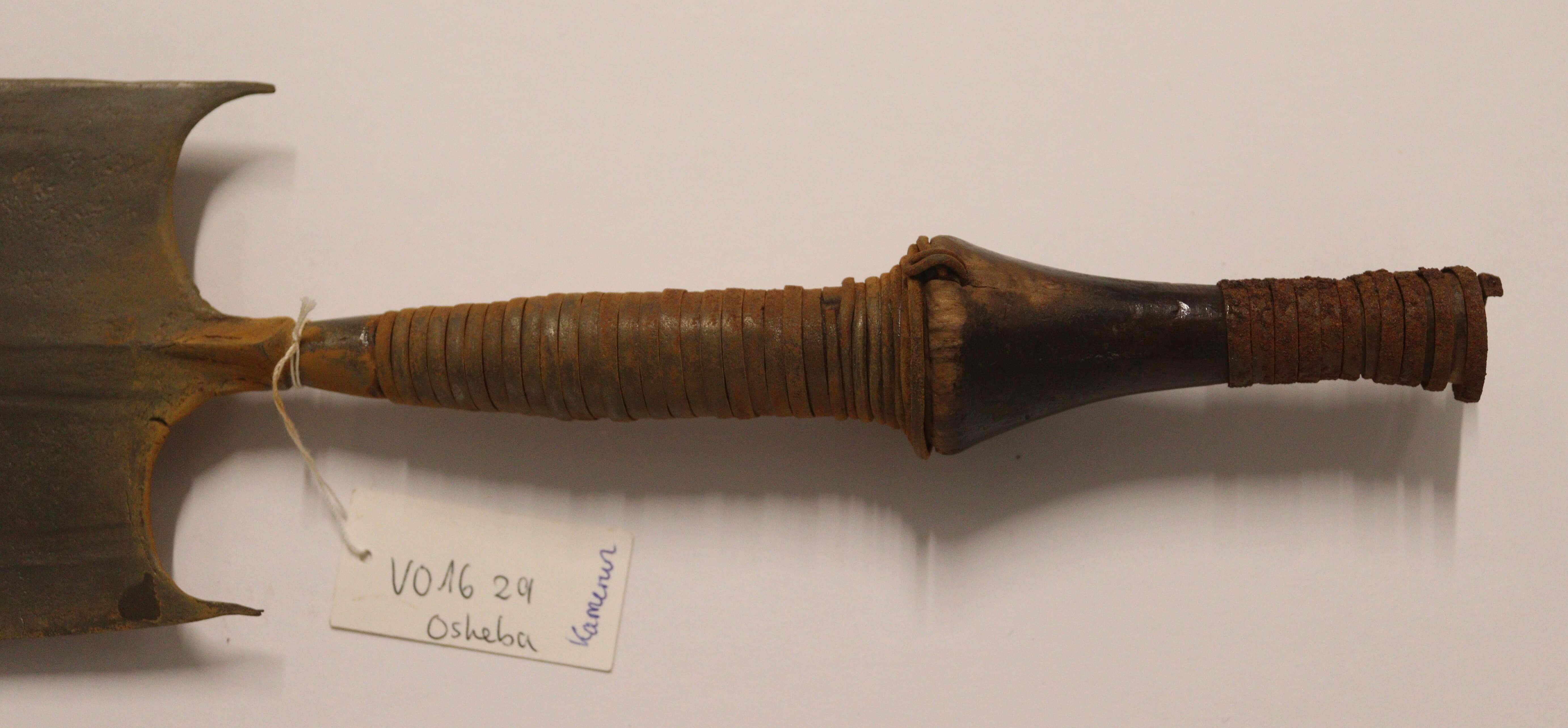 | Inventarbuch-Eintrag | Messer 44 1/2 cm lang. Osheba. |