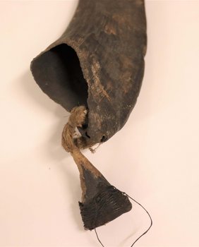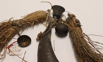 | Inventarbuch-Eintrag | Ausrüstung des Medizinmennes u. Zauberers. Das am Ziegenhorn befestigte Amulett enthält die Zauberkrafr. W. Afrika. Kalbreyer. Geschenk. 1876. (Anm. S.L.: Schenkung erfolgte lt. Bericht des Museumsvereins erst 1877.) |