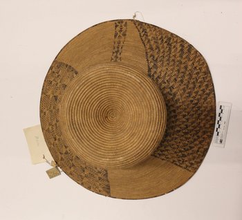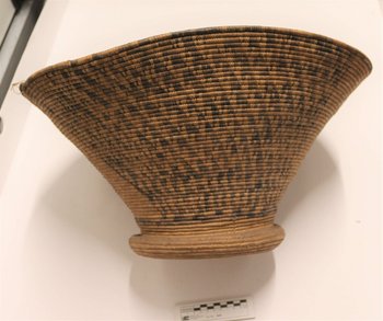 | Inventarbuch-Eintrag | Korb, trichterförmig. Boden flach nach innen kegelförmig eingestülpt, geflochten wie 1835. Mbum. Flegel 1882. |