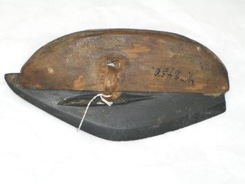 | Inventarbuch-Eintrag | „Kiwakulaakmit“ - Messer aus Schiefer mit Holzfassung, wie sie früher zum Zerschneiden der Felle zur Anfertigung der Kleider, zum Zerkleinern der Fische u. des Fleisches namentlich von Frauen gebraucht wurden. |