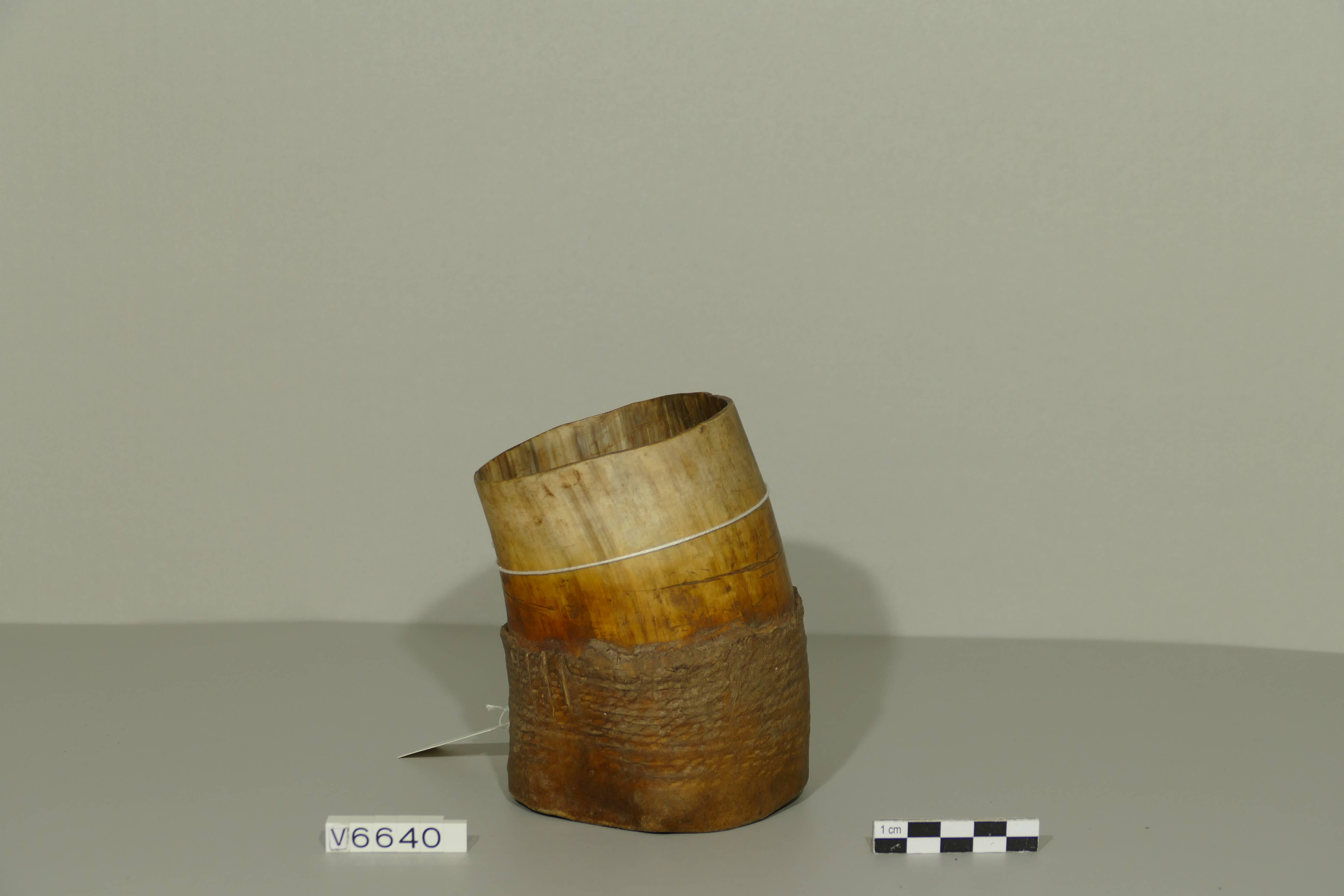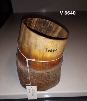 | Erweiterte Beschreibung | Kommentar von Nzila M. Mubusisi (National Museum of Namibia, Windhuk), September 2019: Es handele sich um einen Fettbehälter aus Rinderhorn, nicht um ein Trinkkegäß. |