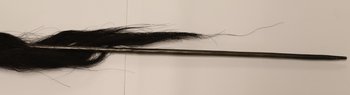 | Erweiterte Beschreibung | Das am Speerschaft befestigte Haarbüschel ist wahrscheinlich die Schwanzquaste eines Gnu. Laut Auskunft von Nzila M. Mubusisi (National Museum of Namibia, Windhuk) und Werner Hillebrecht (Museums Association of Namibia), September 2019, wurden Speere zur Zeit Eichs allenfalls noch zeremoniell verwendet. Die an ihnen befestigten Schwanzquasten stammen von Pferd oder Gnu. |