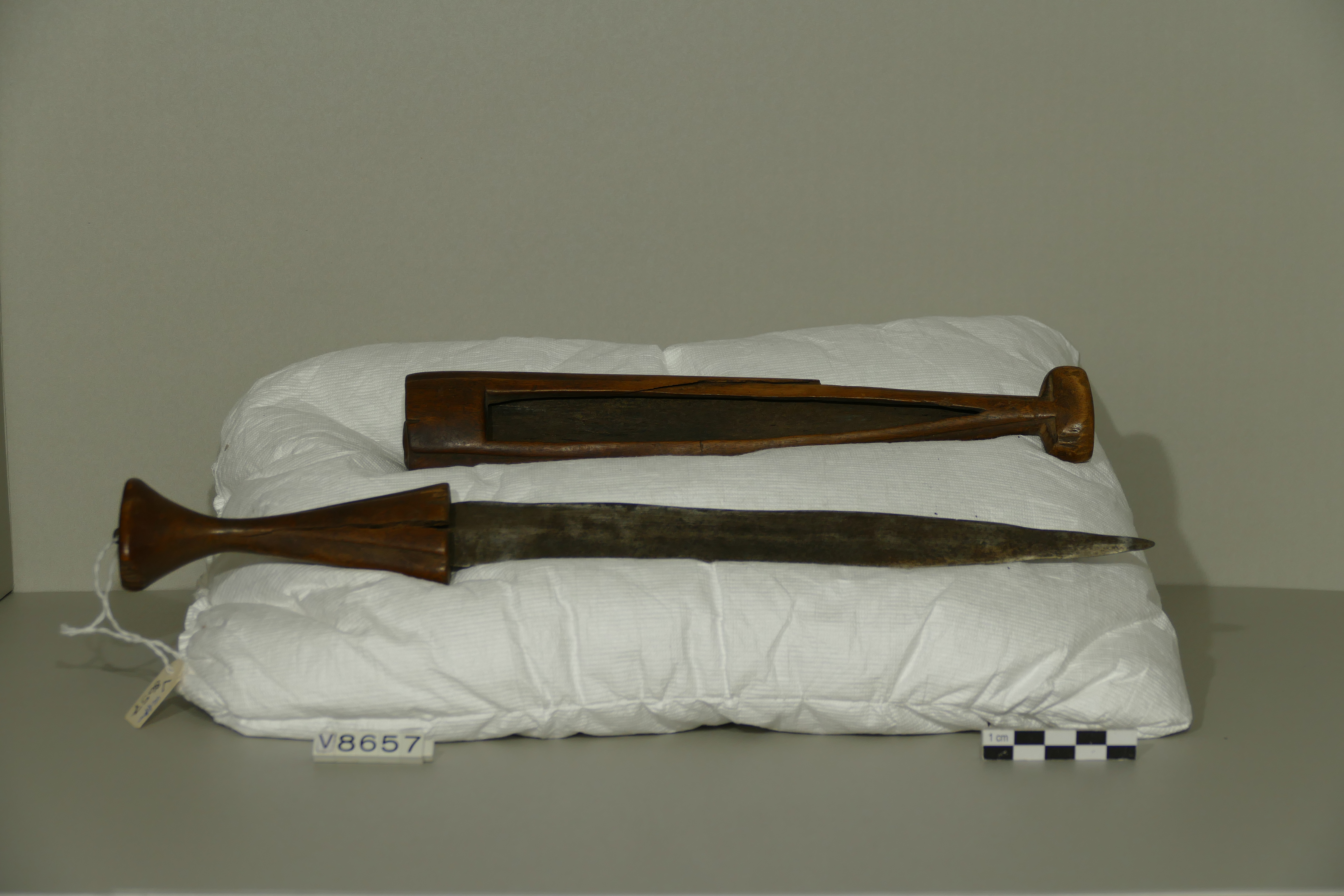 | Inventarbuch-Eintrag | Armdolch mit offener Scheide. Scheide gesplittert. |