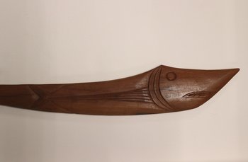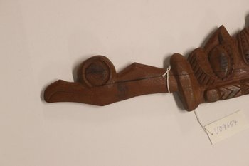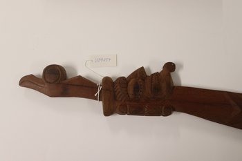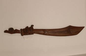 | Inventarbuch-Eintrag | Haumesser aus Holz (Touristenandenken). Holz. L: 74,8 cm, Br. 10 cm. Osterinsel. Geschenk aus Nachlass F. H. Musculus übergeben von R. Alsleben 20.2.86. |
