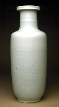 | Erweiterte Beschreibung | Mit hohem, zylindrischem Geäßkörper. Die Dekor ist unter der transparenten Glasur in den Scherben eingeschnitten: Auf der Wandung eine Figurenszene mit den drei Sternengottheiten Shouxing, Luxing und Fuxing sowie einer Gruppe von drei Begleitern; Qing-Dynastie (1644-1911), Kangxi-Periode (1662-1722); Das Objekt ist im Katalog durch Ohlmers Sammlung unter der Nr. 123 (1932) und Nr. 7 (1898 Bunt) zu finden. |