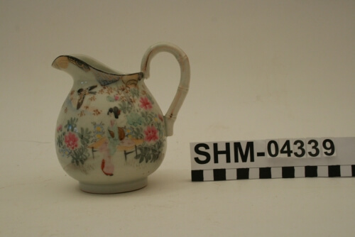 Erweiterte BeschreibungHergestellt in Japan oder von japanischer Firma. Chinesisches Sahnekännchen: Porzellan, weißer, harter, dickwandiger Scherben, bemalt in grün, grau, braun, blau rose` und mit Gold abgesetzt, Motiv: siehe Inv.-Nr.:04338